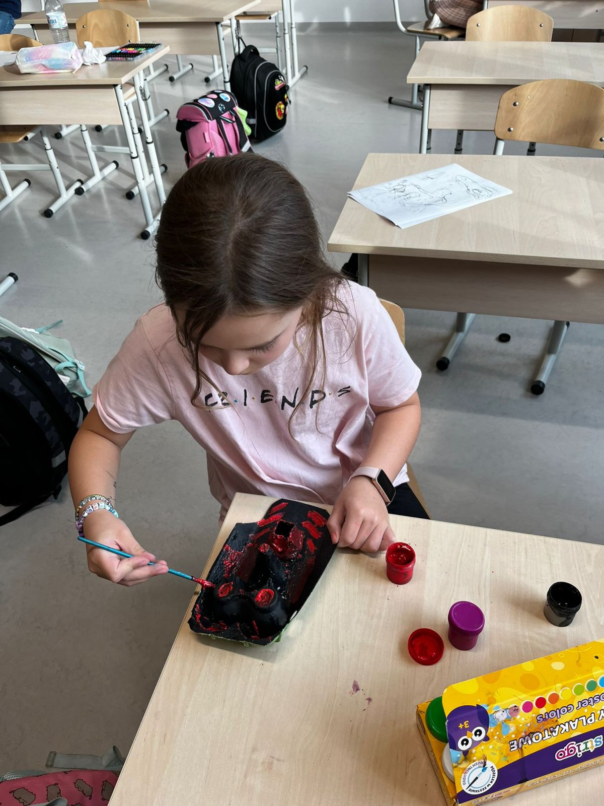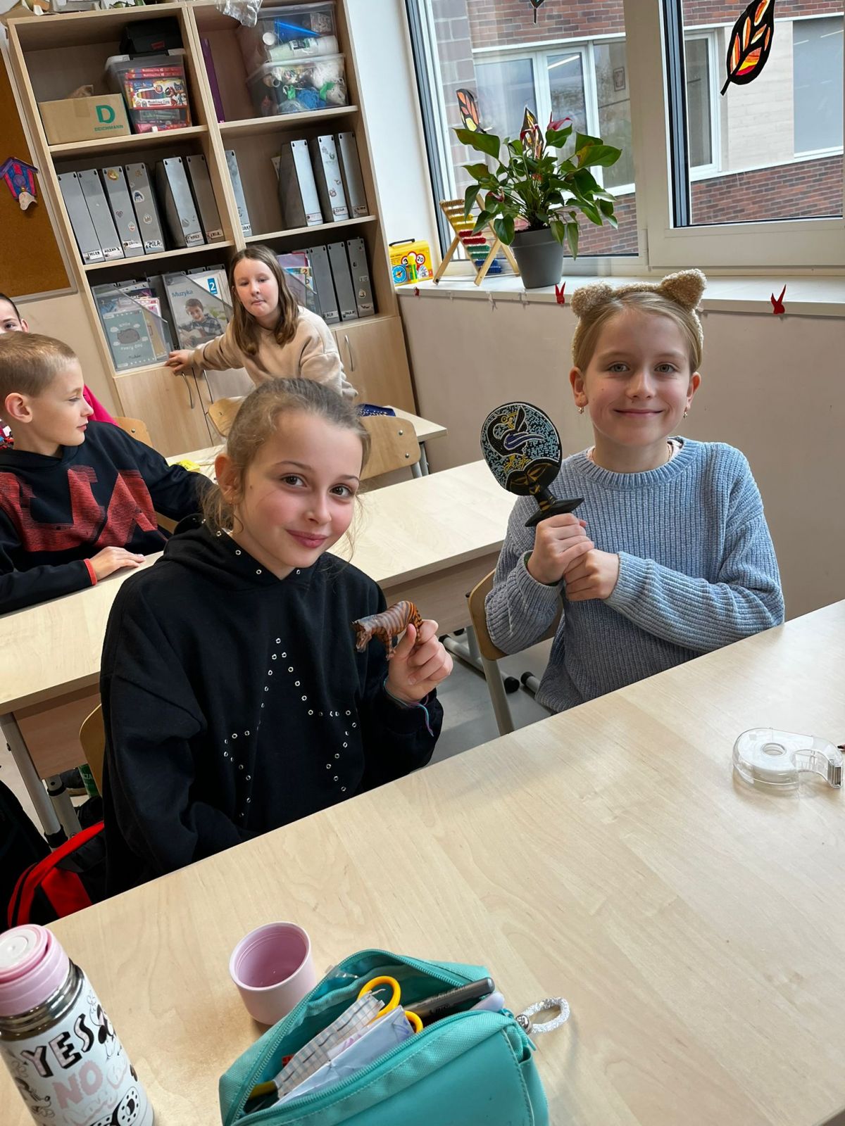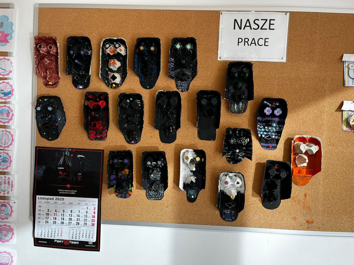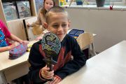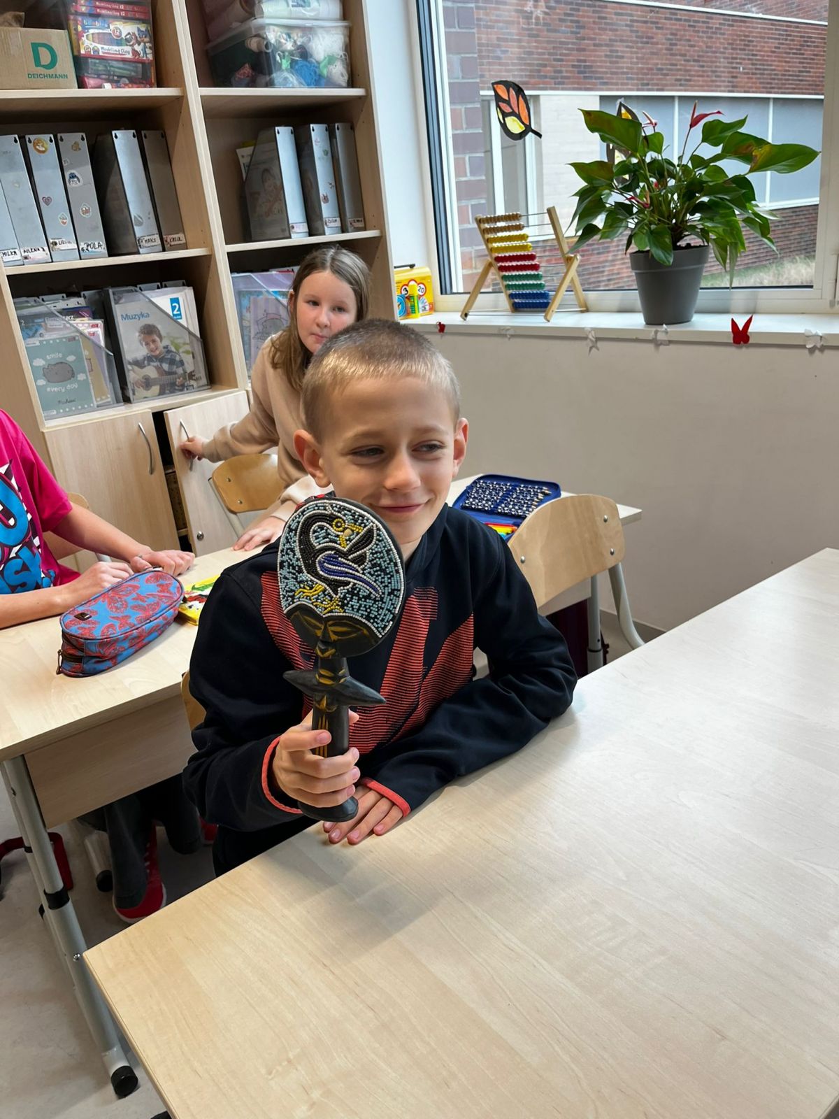 Na koniec omówiliśmy symbolikę masek oraz talizmanów czarowników i szamanów; zrobiliśmy też własne maski, które mają nam przynieść szczęście w tym roku szkolnym.