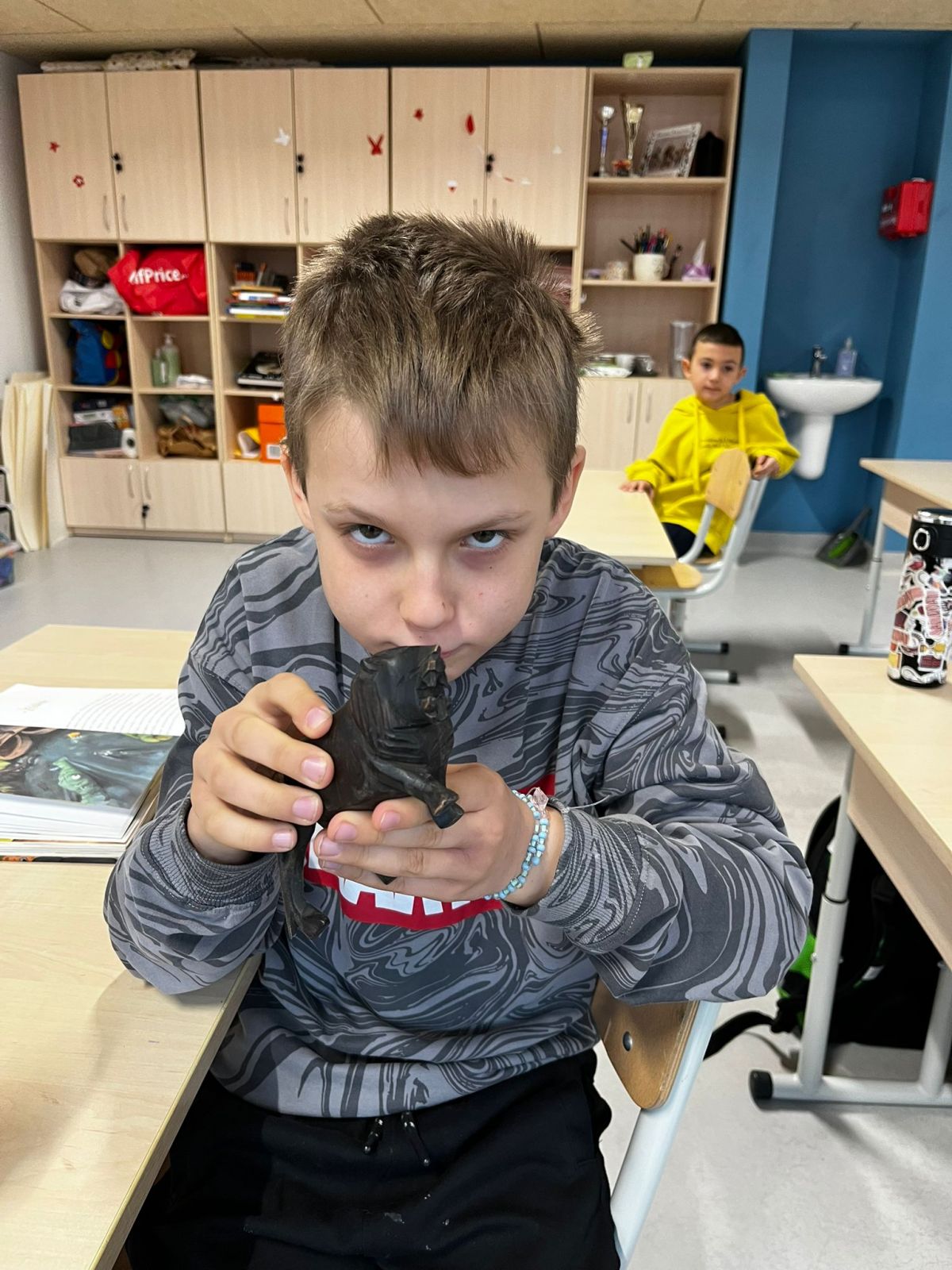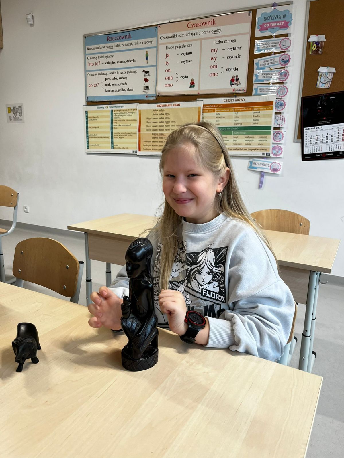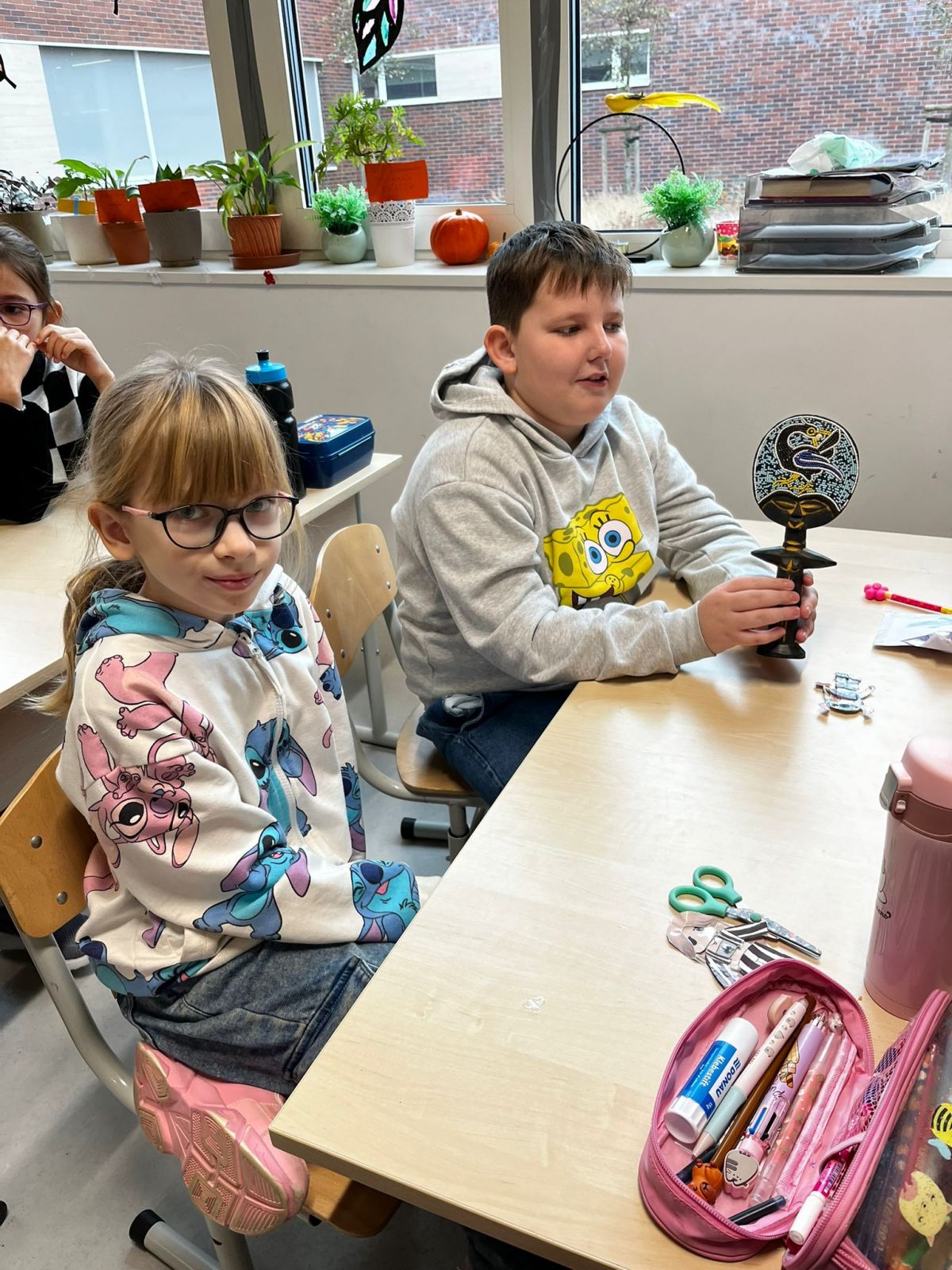 Na koniec omówiliśmy symbolikę masek oraz talizmanów czarowników i szamanów; zrobiliśmy też własne maski, które mają nam przynieść szczęście w tym roku szkolnym.