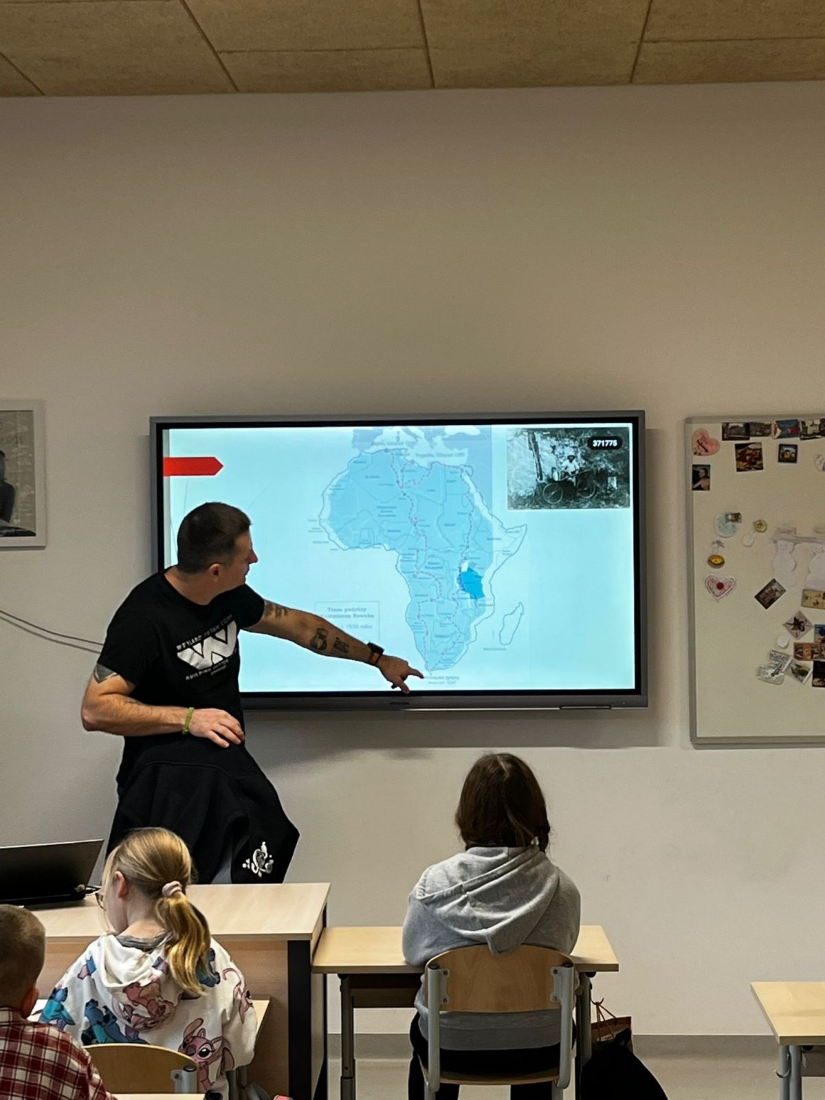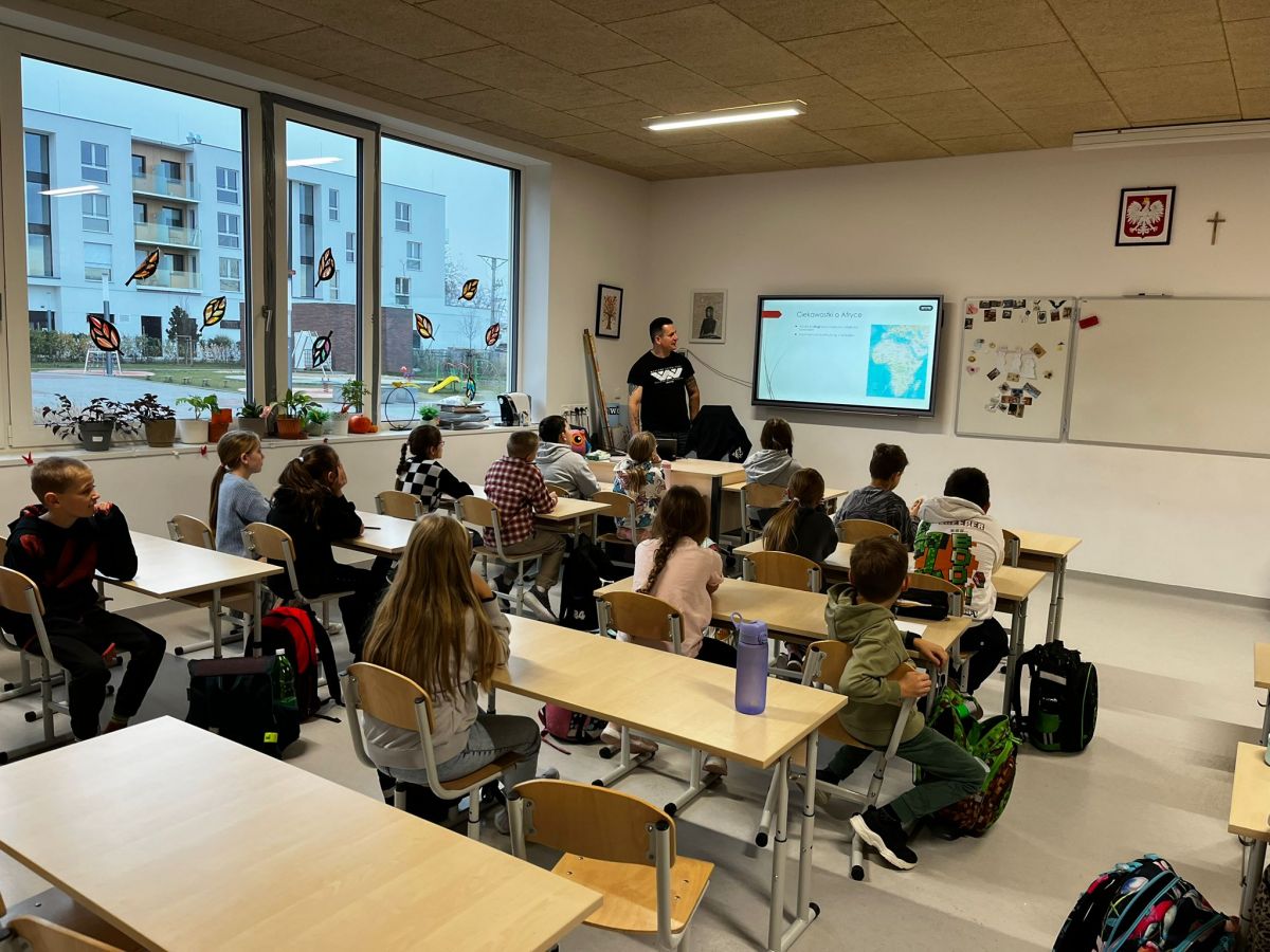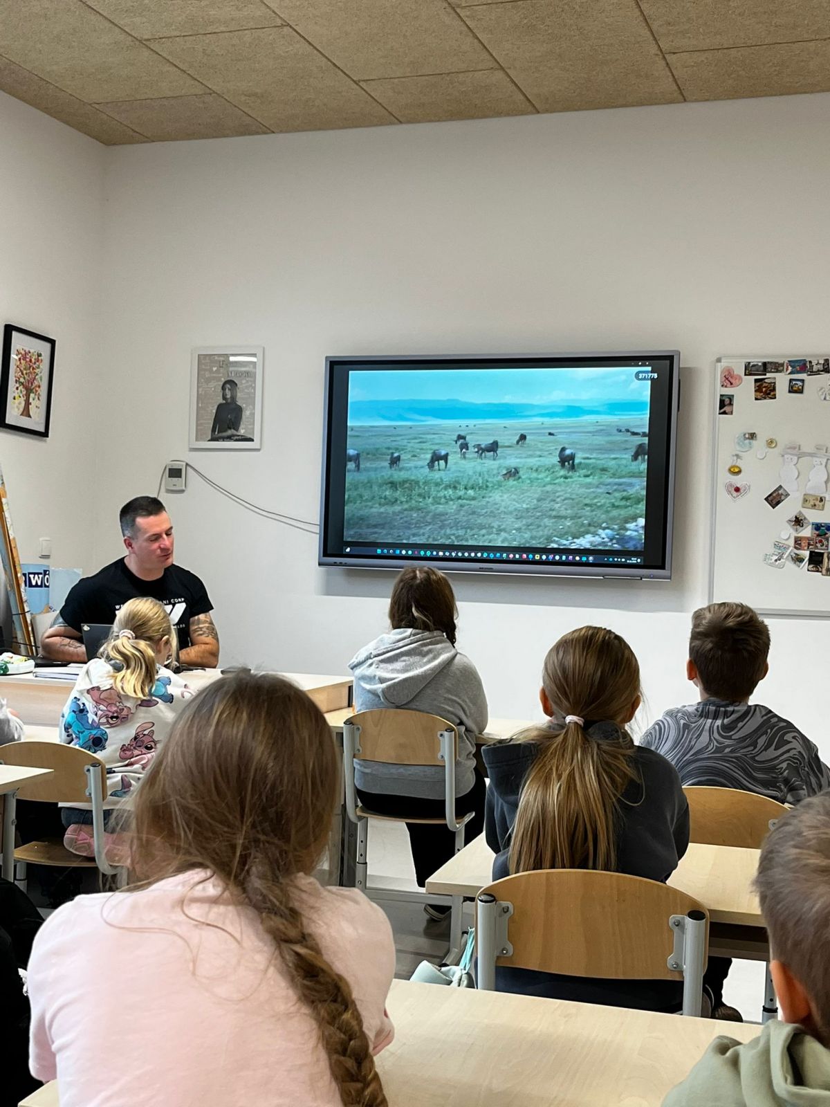 Drugiego dnia ponownie odwiedził nas tata Martynki, pan Tomek Kohsek, który opowiedział nam o swojej afrykańskiej przygodzie, którą przeżył w Tanzanii i Zanzibarze. Obejrzeliśmy ciekawe zdjęcia i filmy z wioski Masajów, a nawet z polowania lwicy na gnu! A dzieci jak zwykle nie chciały puścić pana Tomka do pracy.