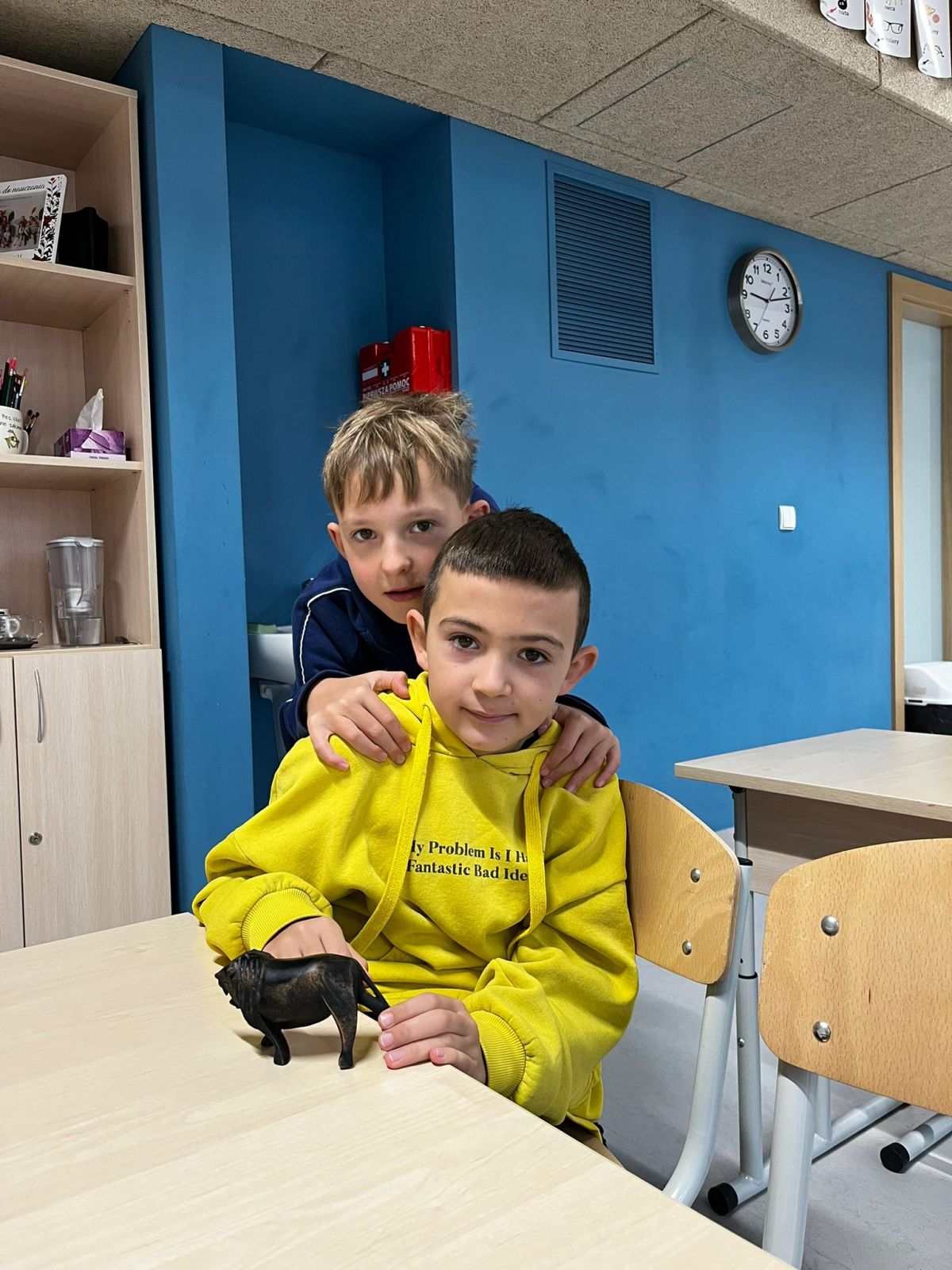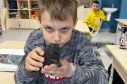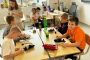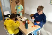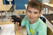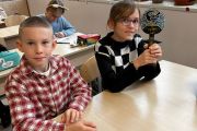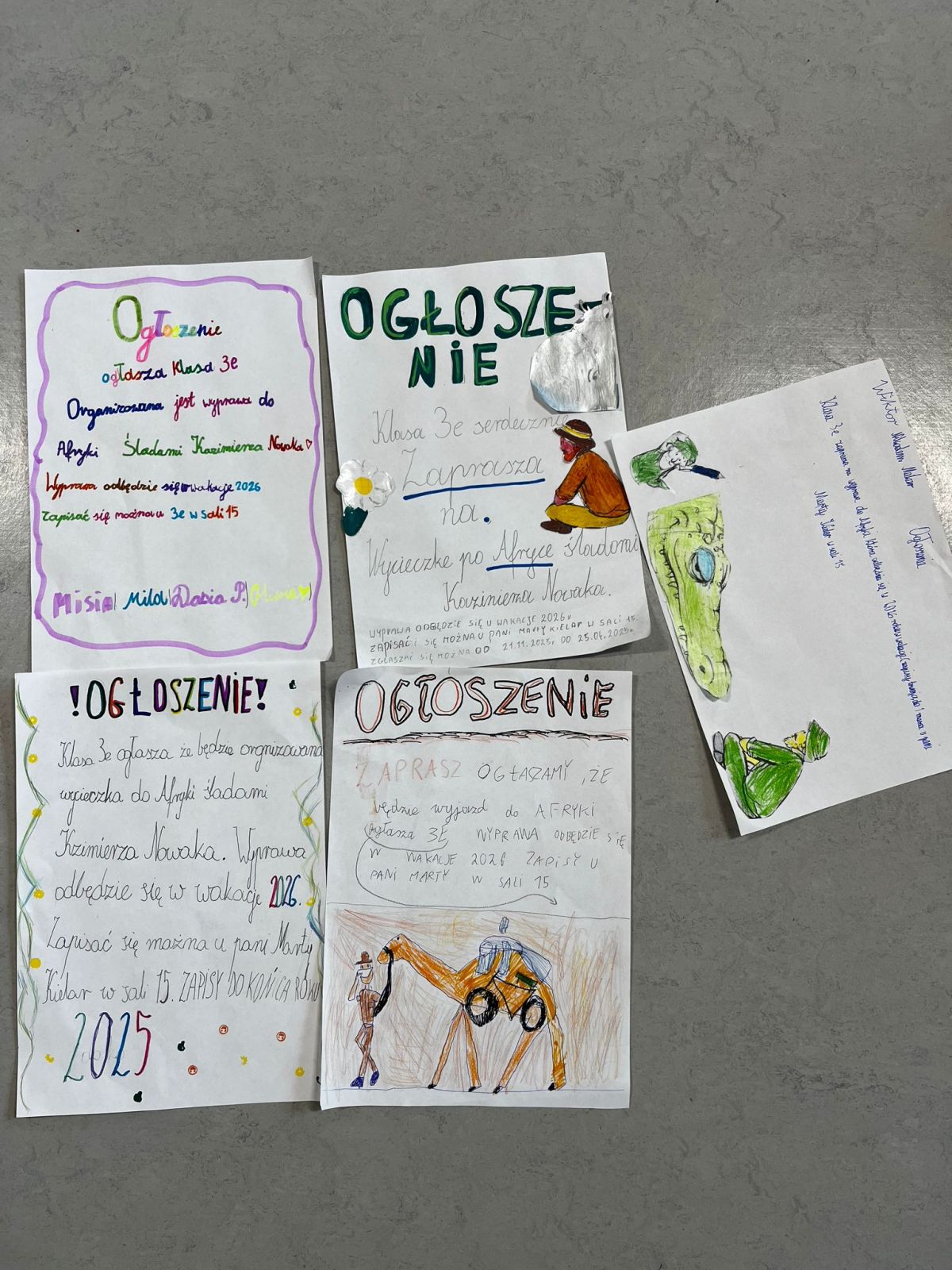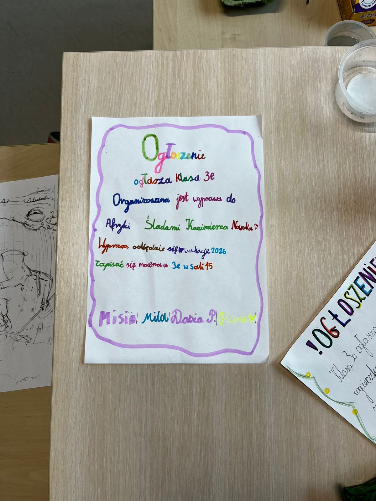 Następnie poćwiczyliśmy ostatnio poznaną krótką formę literacką, a mianowicie ogłoszenie. Dzieci w grupach pisały ogłoszenie o organizowanej przez nas wyprawie śladami Kazimierza Nowaka. Miło było puścić wodze fantazji i wyobrażać sobie wspólne wakacje w Afryce.
