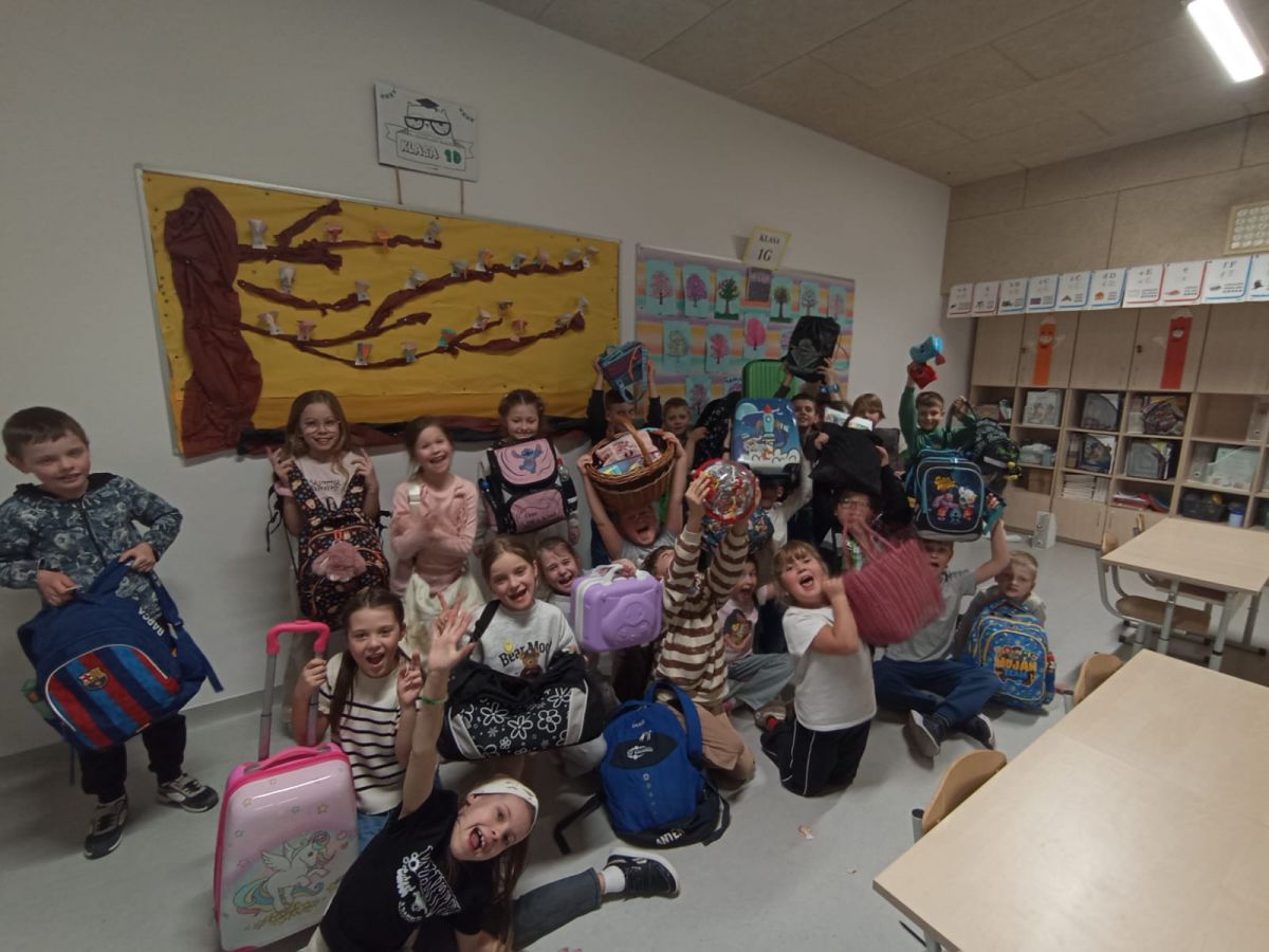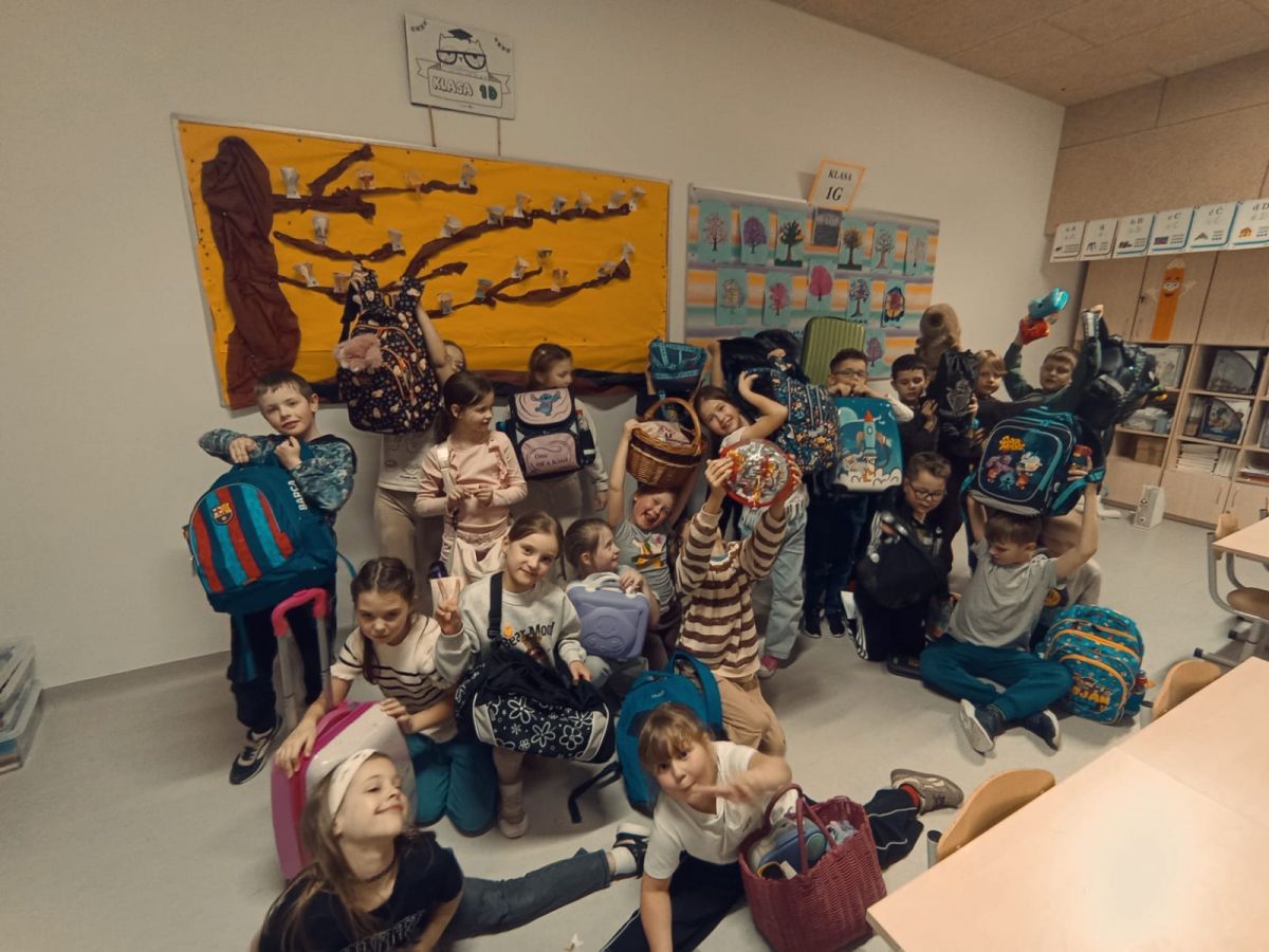 Dzisiaj korytarze zamieniły się w prawdziwy festiwal kreatywności. Zamiast nudnych plecaków zobaczyliśmy... dosłownie wszystko! Skrzynki na narzędzia, walizki, torby zakupowe, torby podróżne, kosze, wiadra, pufy, futerały na gitary, poszewki na poduszkę , samochody zabawkowe, pluszaki, a nawet transportery dla kotów (oczywiście bez lokatorów).