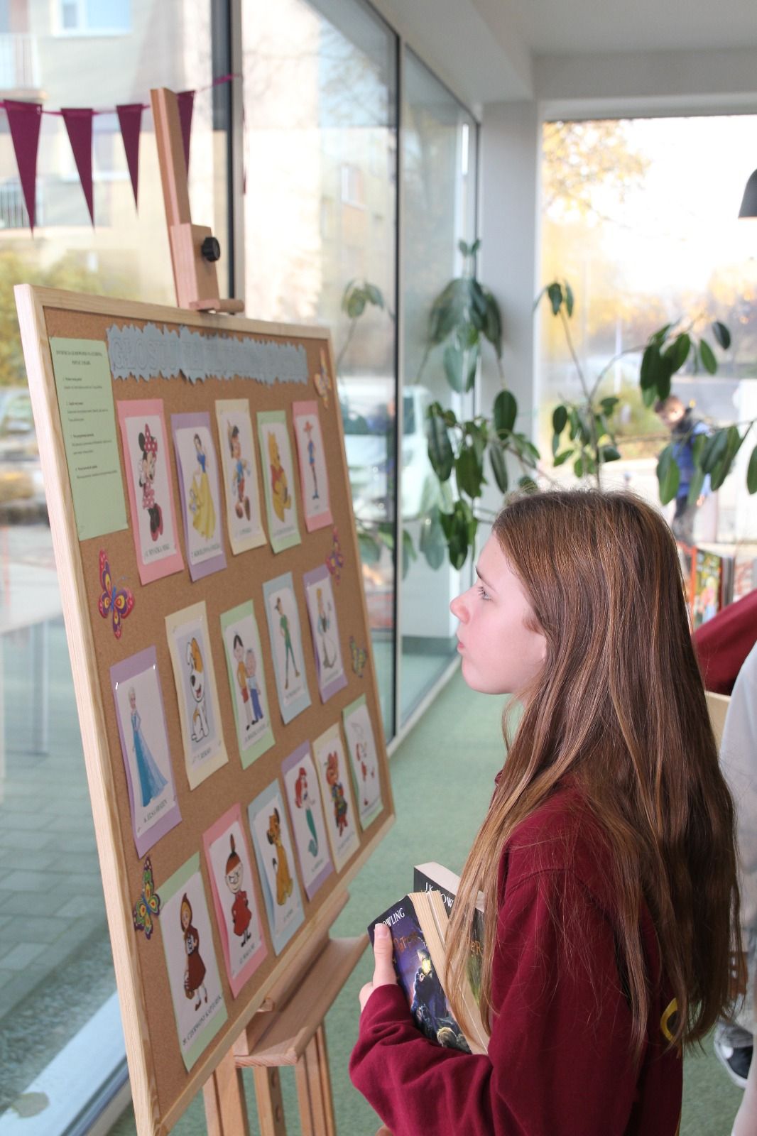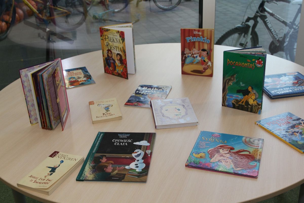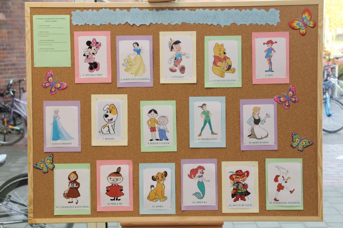 Już od rana w bibliotece uczniowie wraz z nauczycielami z radością prezentowali swoje bajkowe stroje na specjalnie przygotowanej z tej okazji ściance dekoracyjnej. Wszyscy wykazali się dużą kreatywnością i wyobraźnią. Dodatkowym punktem tego wyjątkowego dnia było głosowanie na ulubioną postać z bajki, które rozpoczęliśmy już od poniedziałku. Wśród 16 bajkowych postaci: Myszka Miki, Królewna Śnieżka, Pinokio, Kubuś Puchatek, Pippi, Elsa Frozen, Reksio, Bolek i Lolek, Piotruś Pan, Kopciuszek, Czerwony Kapturek, Mała Mi, Simba, Arielka, Kot w butach, Koziołek Matołek uczniowie oraz nauczyciele wybierali swoją ulubioną. Najwięcej głosów zdobył REKSIO. Świętowanie umilała nam wystawa bajkowych książek oraz muzyka z bajek przenosząc nas do magicznej krainy opowieści. Nie zabrakło również w tym dniu słodkiego akcentu w postaci cukierków dla uczniów.