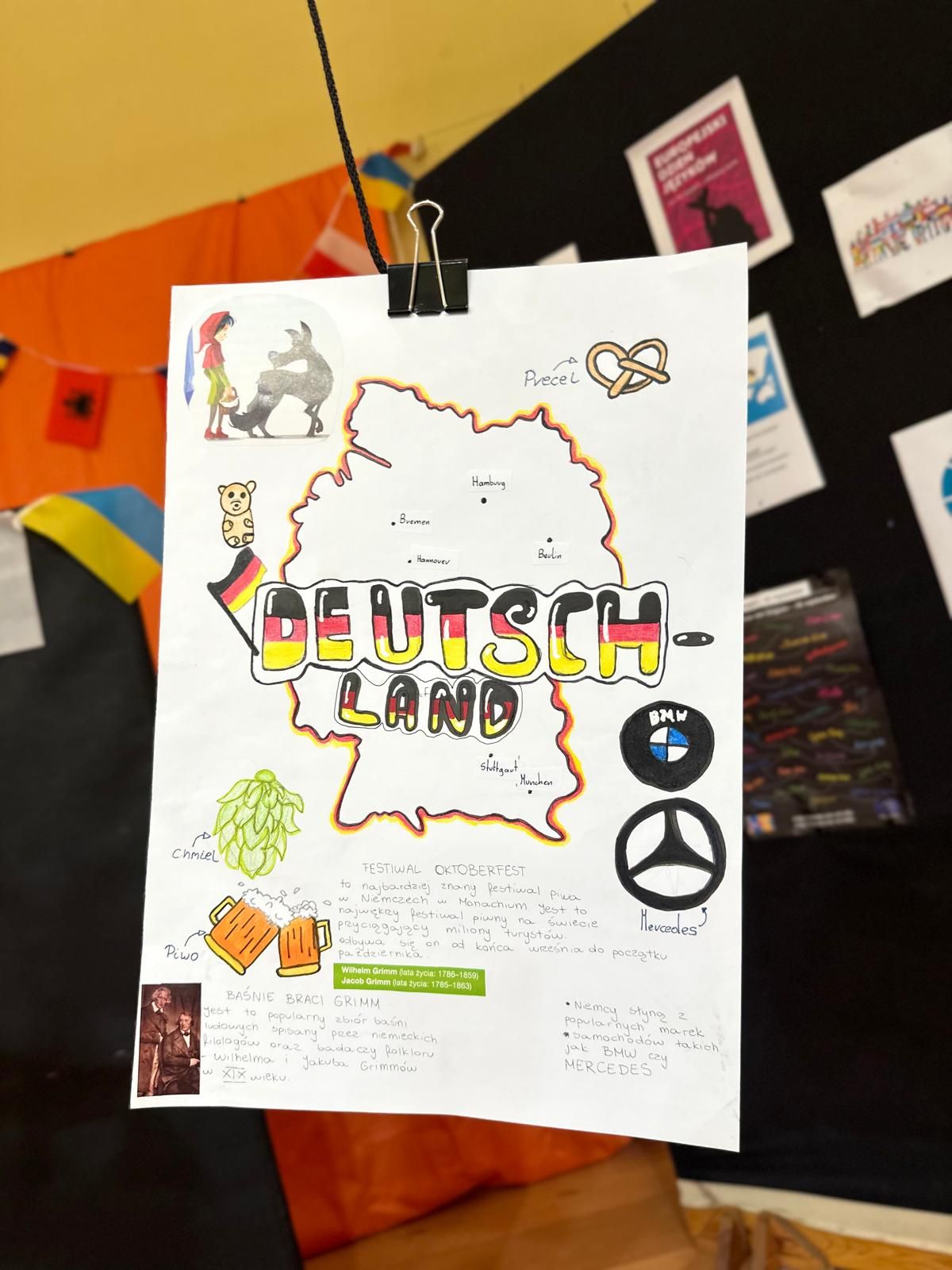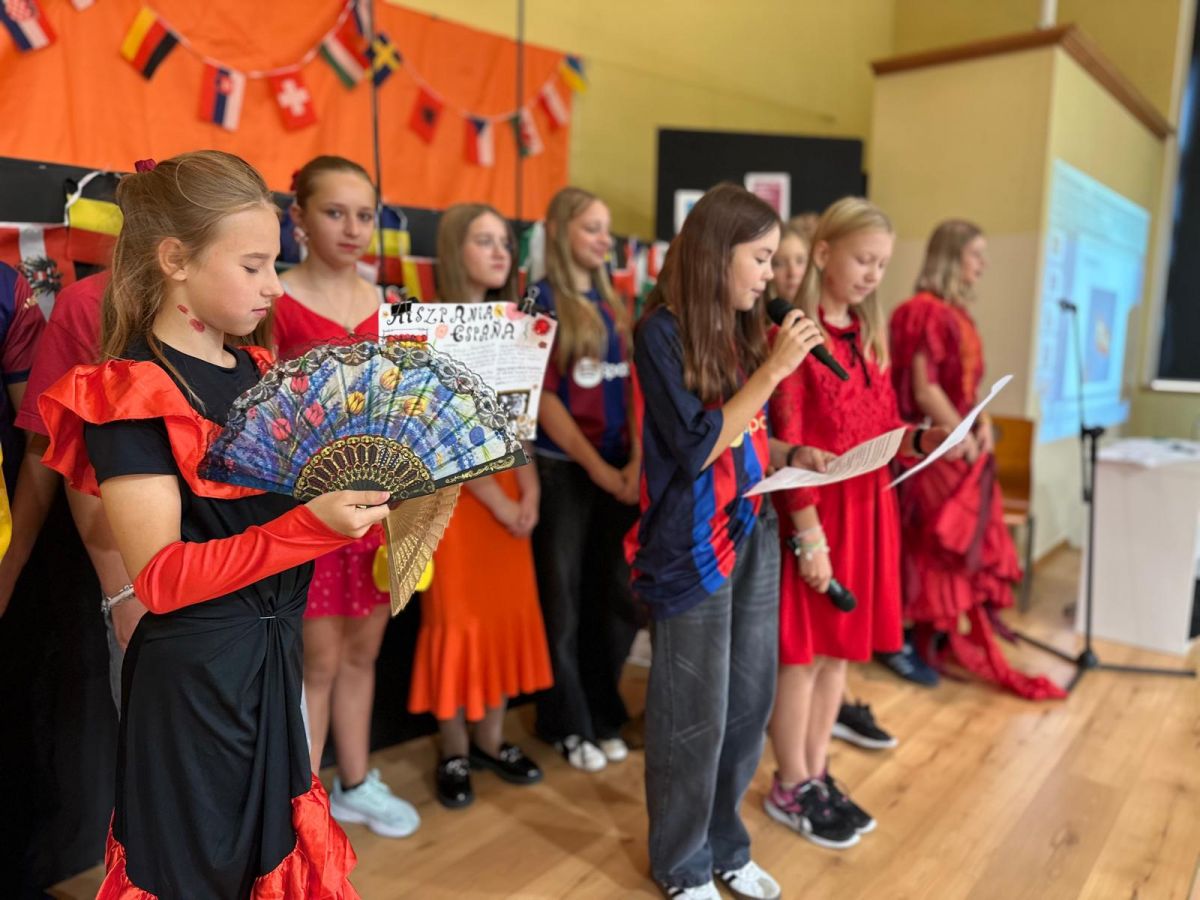 26 września 2025 roku obchodziliśmy Europejski Dzień Języków Obcych w naszej szkole. Cieszymy się, że w tym roku jubileuszowym (Europejski Dzień Języków Obcych odbył się po raz 25!) wszystkie 12 klas wzięło udział w tym wydarzeniu i stanęło do rywalizacji w kilku konkurencjach. Na początek wychowawcy klas wylosowali kraj, który ich klasy miały reprezentować. Przydział dla poszczególnych klas wyglądał następująco: