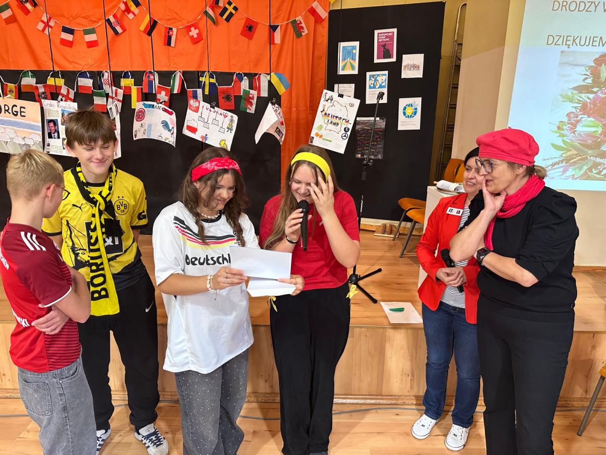 Zwycięzcy otrzymali „bilety” zwalniające całą klasę od odpowiedzi ustnej w wybrany przez siebie dzień danego miesiąca (października, listopada, grudnia), a uczniowie stanowiący drużynę dodatkowo oceny celujące z języka niemieckiego i angielskiego w kategorii aktywność. Uczniowie wszystkich klas otrzymali słodki poczęstunek za udział w zabawie.