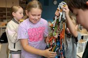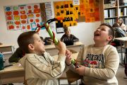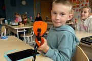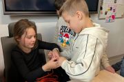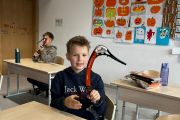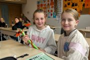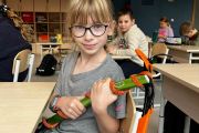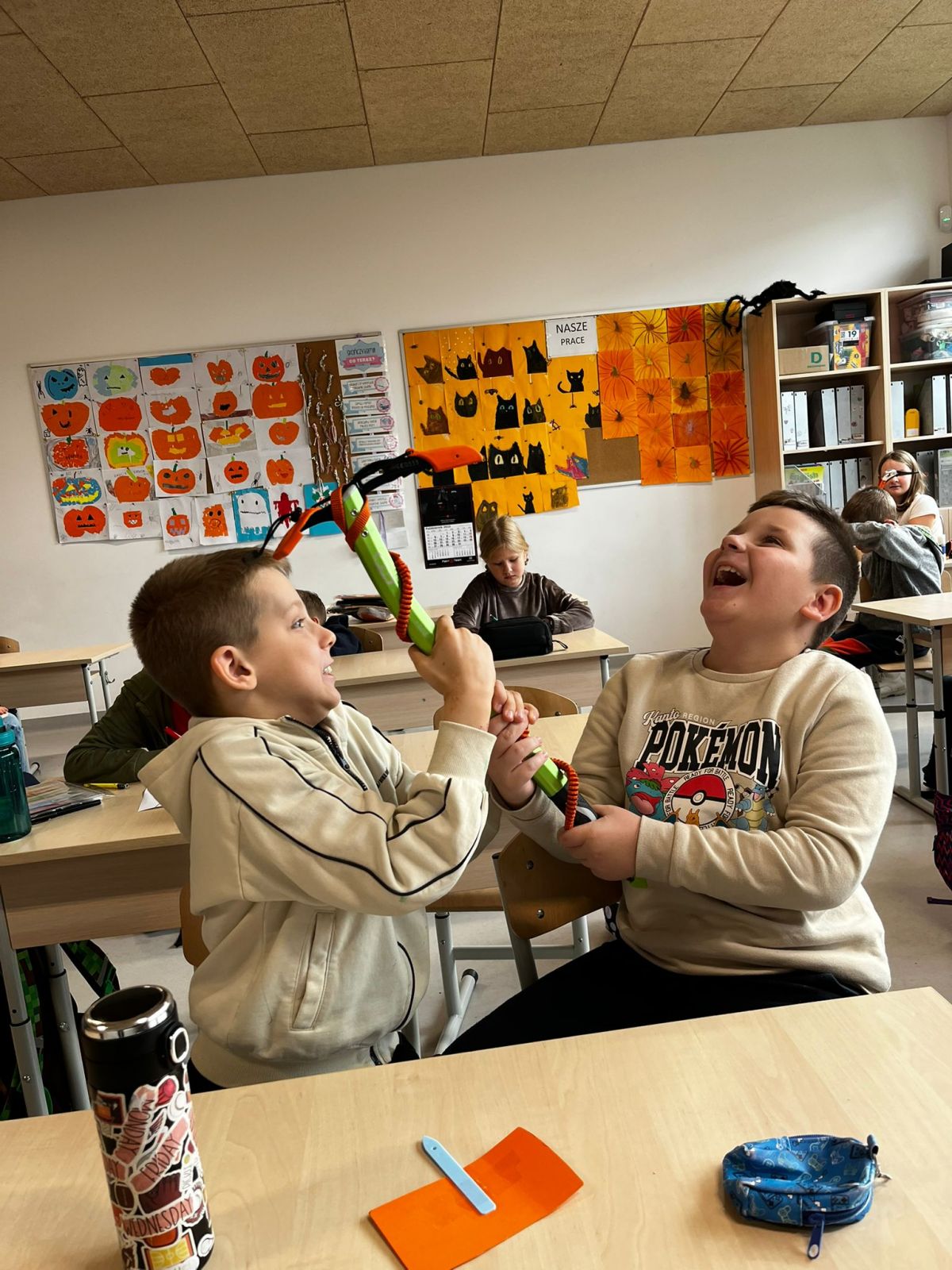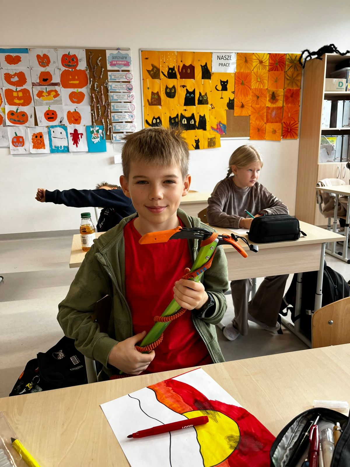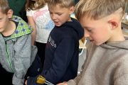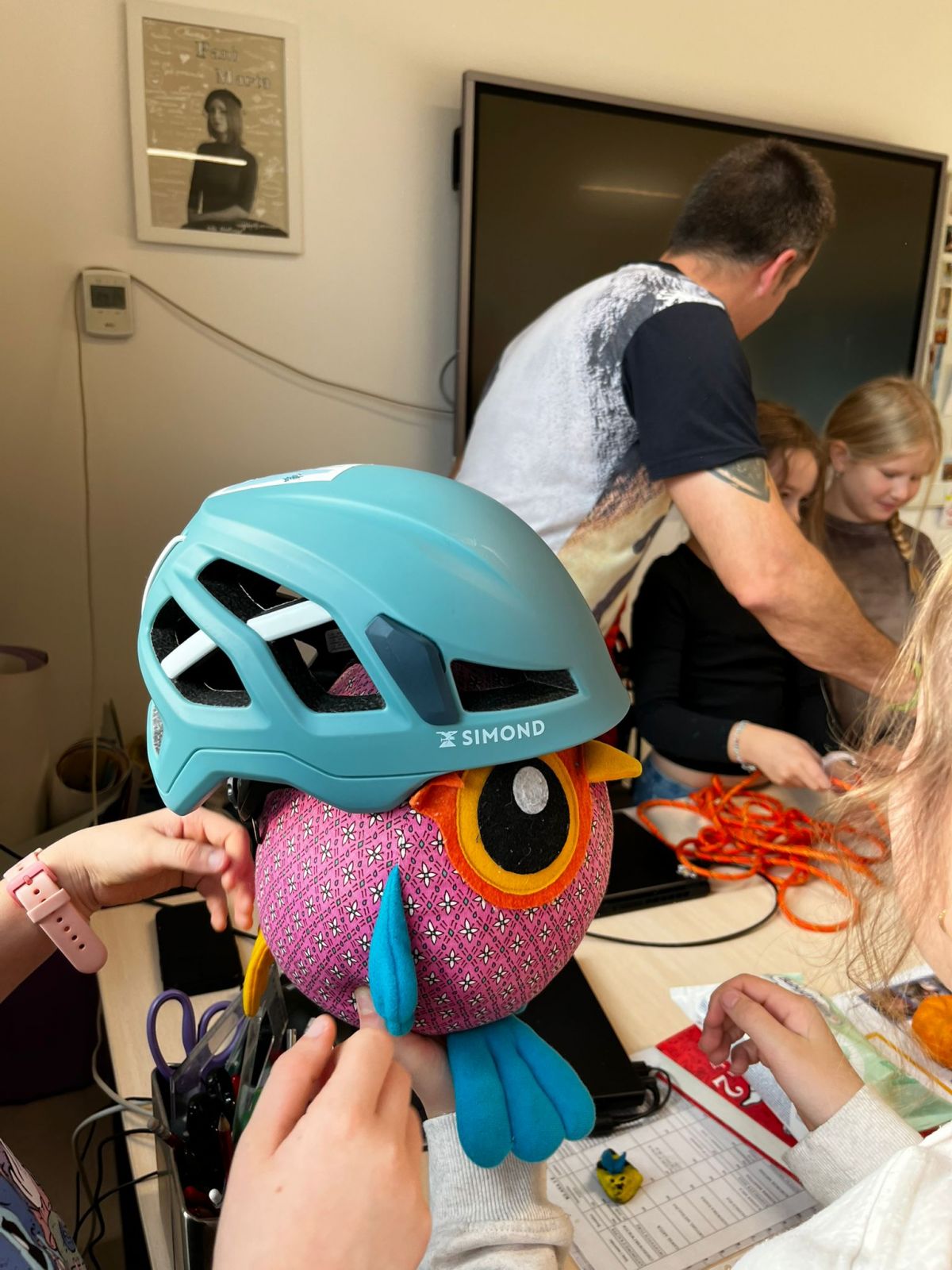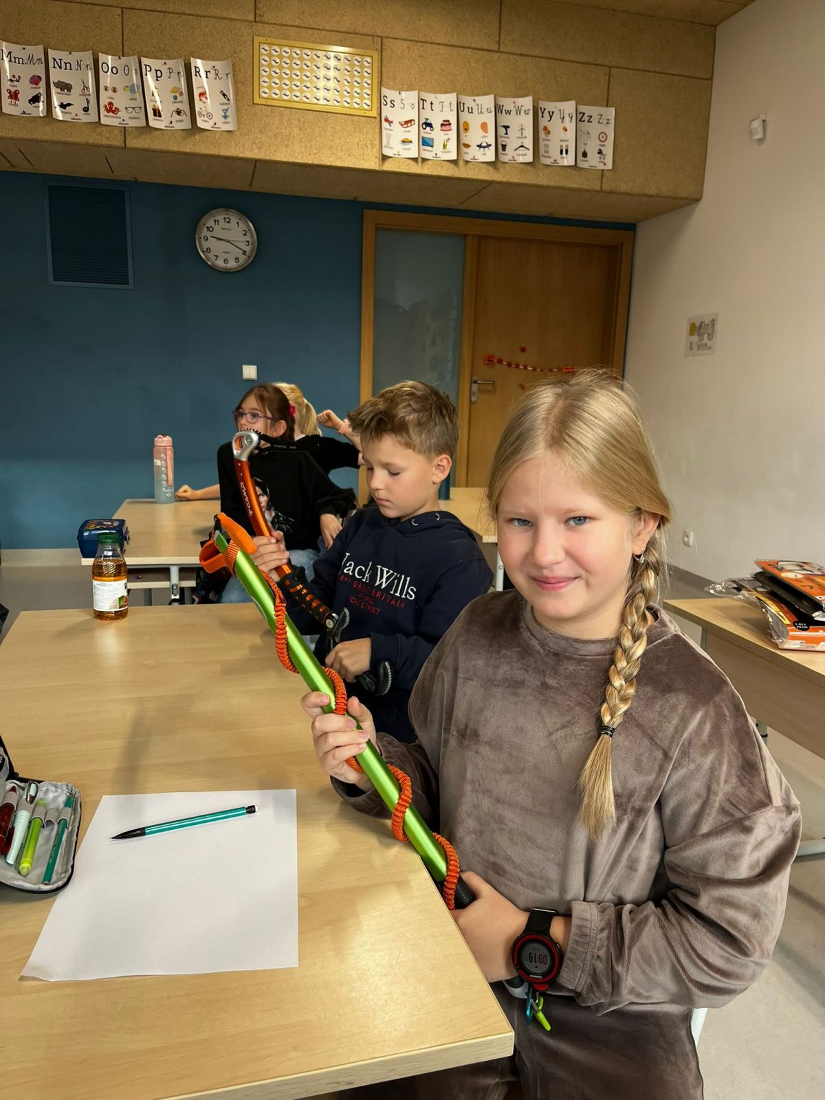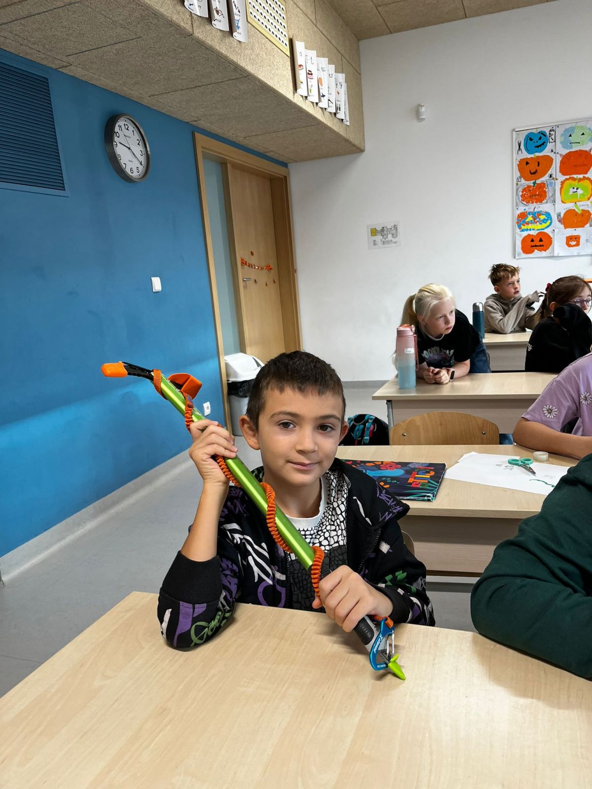 Dzisiaj klasę 3e odwiedził tata Martynki - pan Tomek Kohsek. Przyszedł do nas objuczony w sprzęt górski niczym Szerpa. Pan Tomek opowiadał o swojej wielkiej pasji, jaką jest chodzenie po górach. Uczniowie dowiedzieli się, które szczyty górskie są najwyższe, jakie są podstawowe zasady zachowania bezpieczeństwa w górach zarówno podczas weekendowych trekkingów z rodziną, jak i podczas już bardziej wyczynowego zdobywania szczytów. Obejrzeliśmy zdjęcia i filmy z zapierającymi dech widokami, jak i z zasłaniającymi wszystko chmurami czy mgłą - pogoda lubi płatać figle alpinistom. Potem wszyscy zgromadzili się wokół plecaka pana Tomka niczym wokół worka świętego Mikołaja, a Pan Tomek zaczął wyciągać z niego buty górskie, uprzęże, liny, czekany, raki i inne sprzęty niezbędne podczas górskich wspinaczek, co wzbudziło w dzieciach niemały entuzjazm.