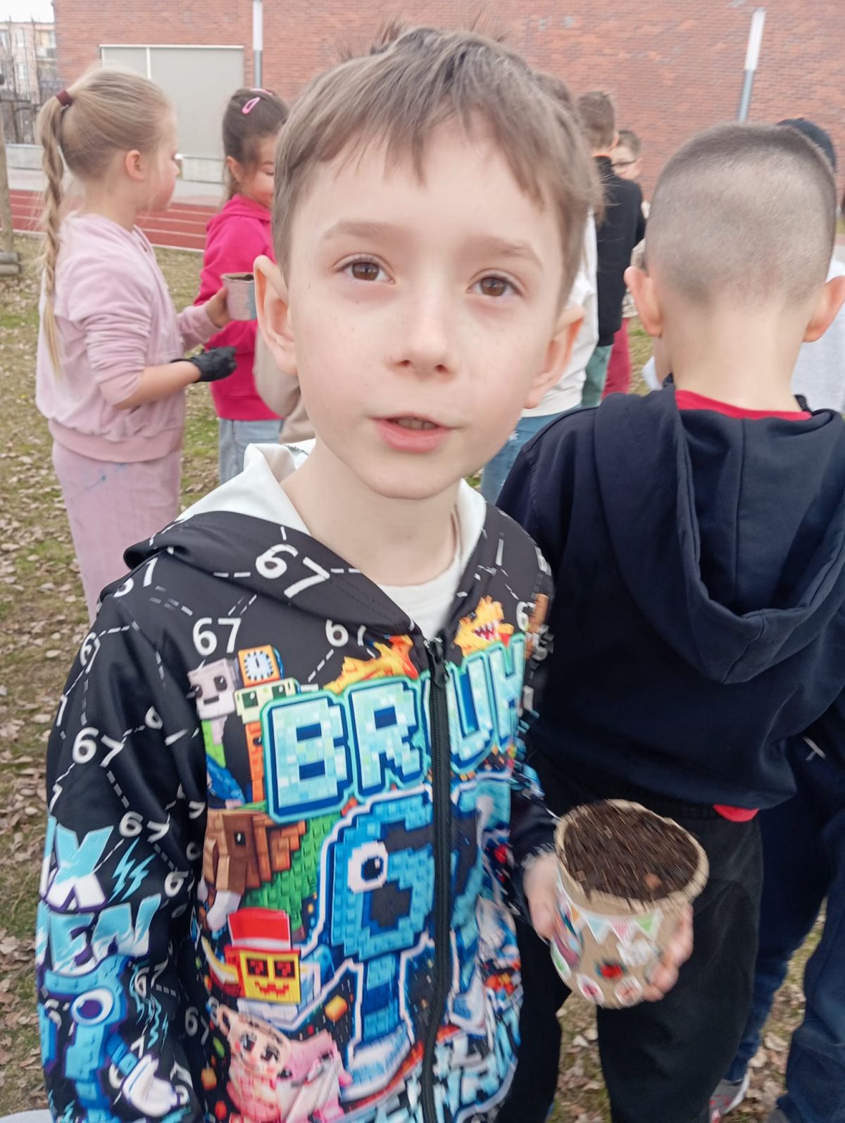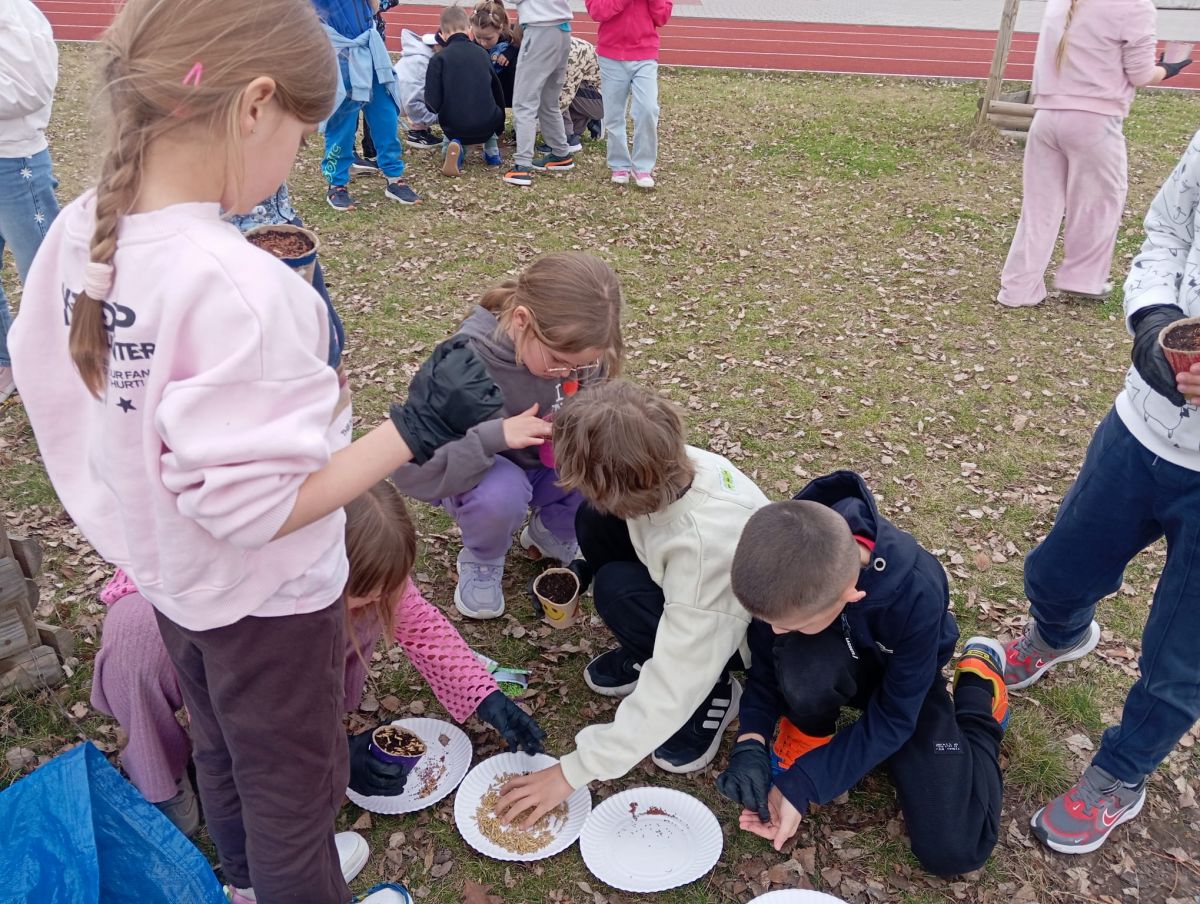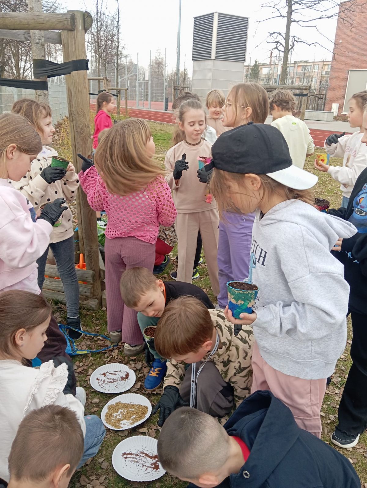 Dziś klasa 1d w ramach zajęć przyrodniczych spędziła czas na świeżym powietrzu, sadząc rzeżuchę i owies. Najpierw uczniowie ozdabiali doniczki, a następnie wsypywali do nich ziemię i wysiewali nasiona. Przy okazji rozmawialiśmy o tym, czego rośliny potrzebują do wzrostu – słońca, wody i odpowiedniej gleby. To była świetna lekcja przyrody i wspólnej zabaw.