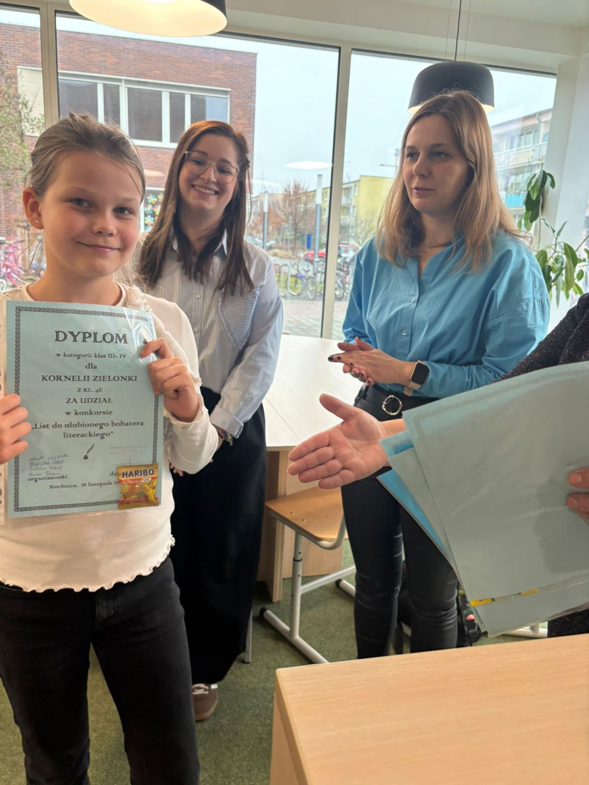 Z okazji Międzynarodowego Miesiąca Bibliotek Szkolnych, który obchodzony jest w październiku w naszej szkole odbył się konkurs literacki ,,List do ulubionego bohatera literackiego,,. W konkursie wzięły udział klasy III-VIII. Prace zostały ocenione w dwóch kategoriach: klasy III-IV oraz V-VIIII.