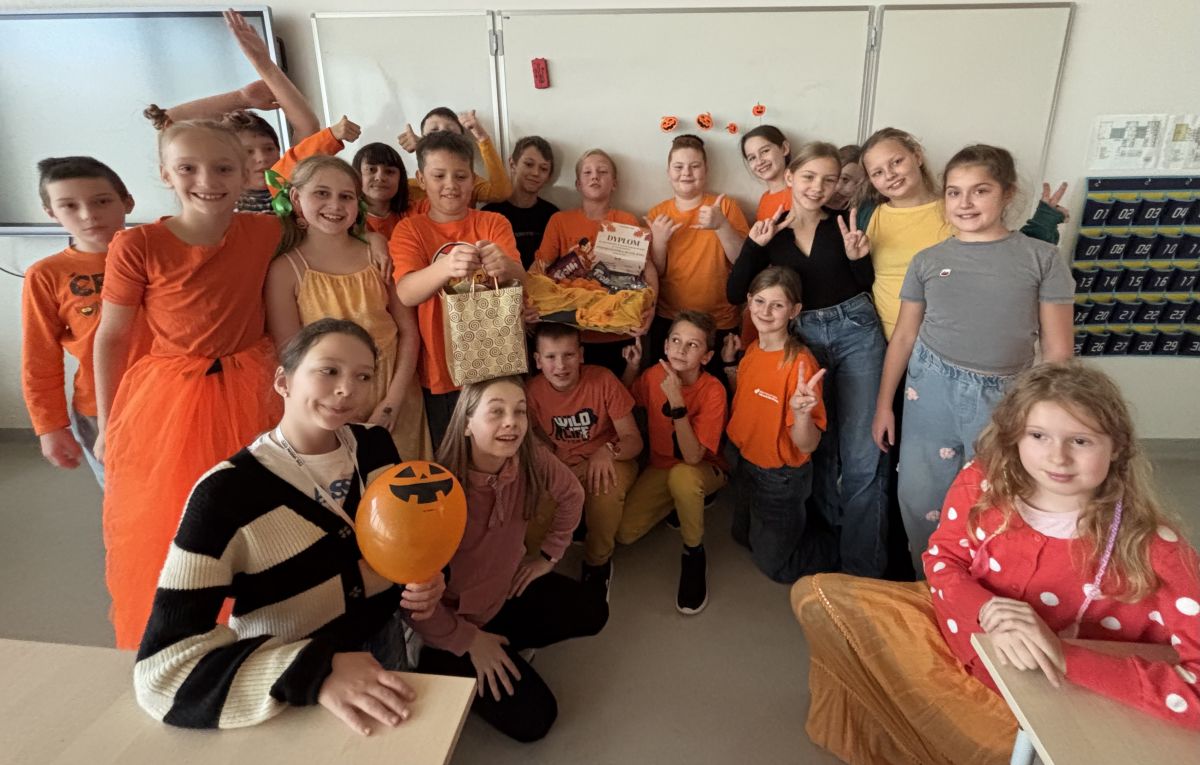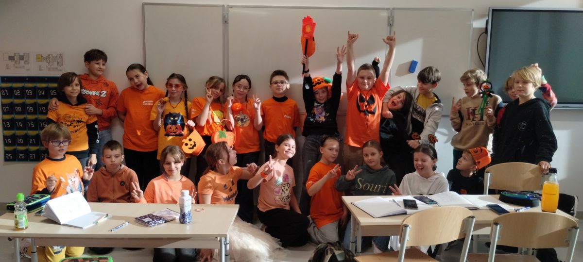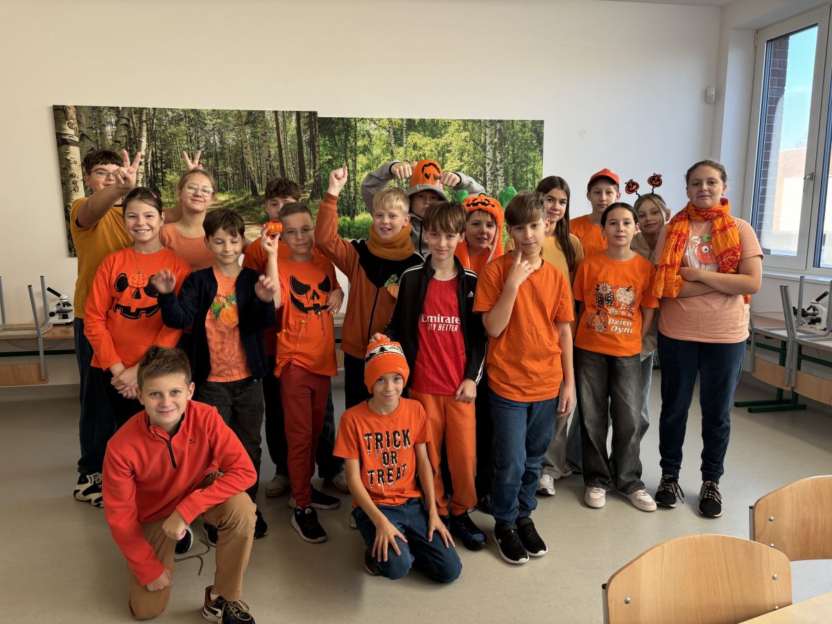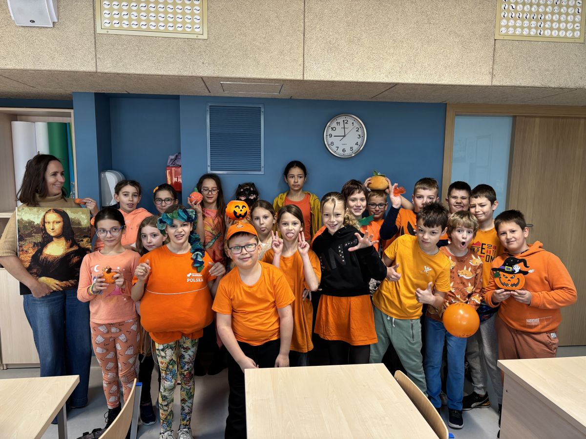 31 października 2025 r. w klasach IV i V odbył się konkurs na Najbardziej Pomarańczową Klasę. Pomarańczowe stroje, dyniowe dekoracje i ogromna energia wypełniły szkolne korytarze! Komisja miała bardzo trudne zadanie, ponieważ wszystkie klasy zaprezentowały się wspaniale. Ostatecznie tytuł Pomarańczowej Klasy Roku zdobyła IV a - serdecznie gratulujemy!