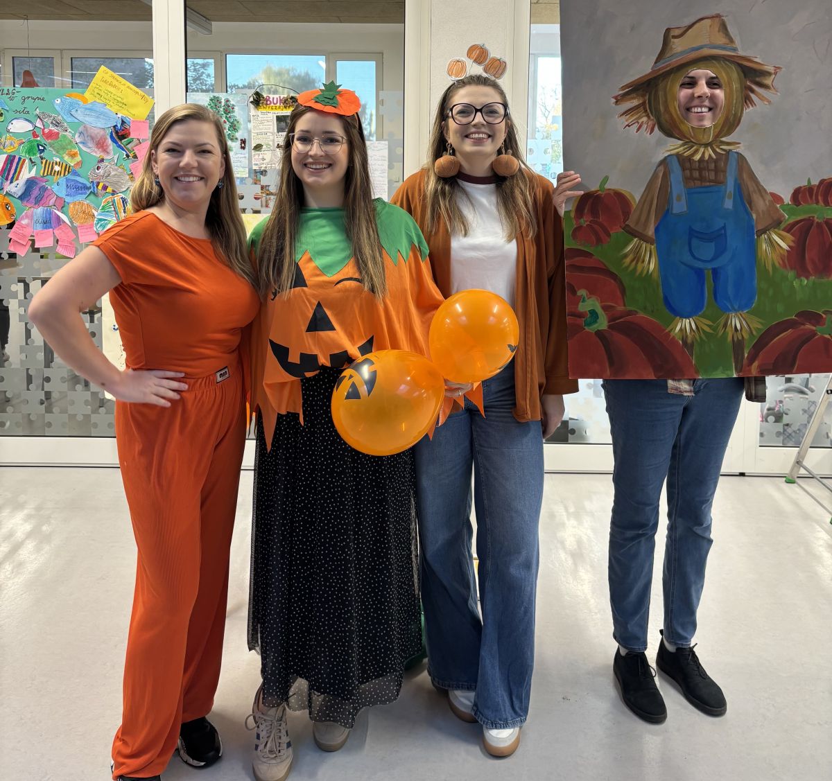 Kolejnym punktem programu był Pumpkin Tongue Twister Challenge - wyzwanie dla chętnych uczniów, którzy próbowali swoich sił w zabawnych łamańcach językowych. Dodatkową atrakcją była jesienna fotobudka, w której uczniowie mogli zrobić sobie pamiątkowe zdjęcia w dyniowej scenerii.