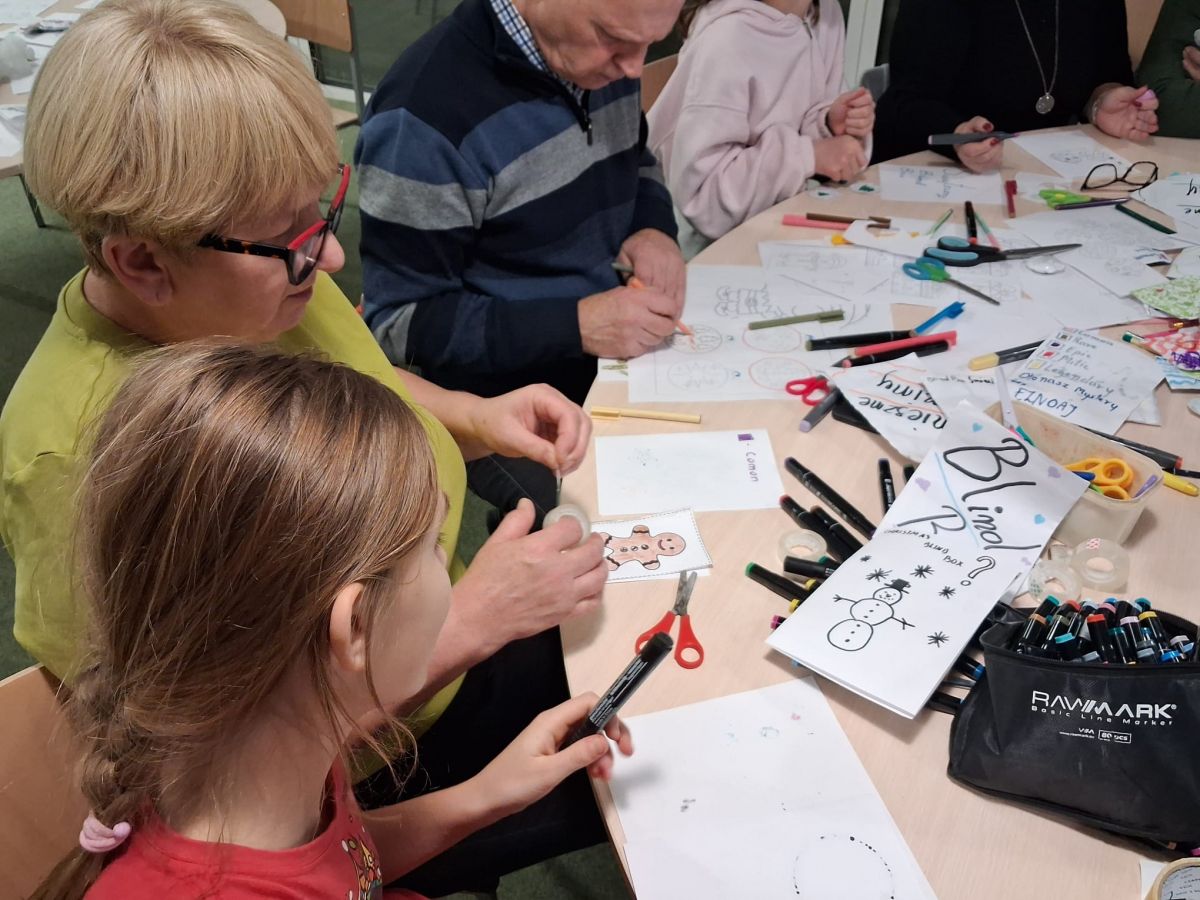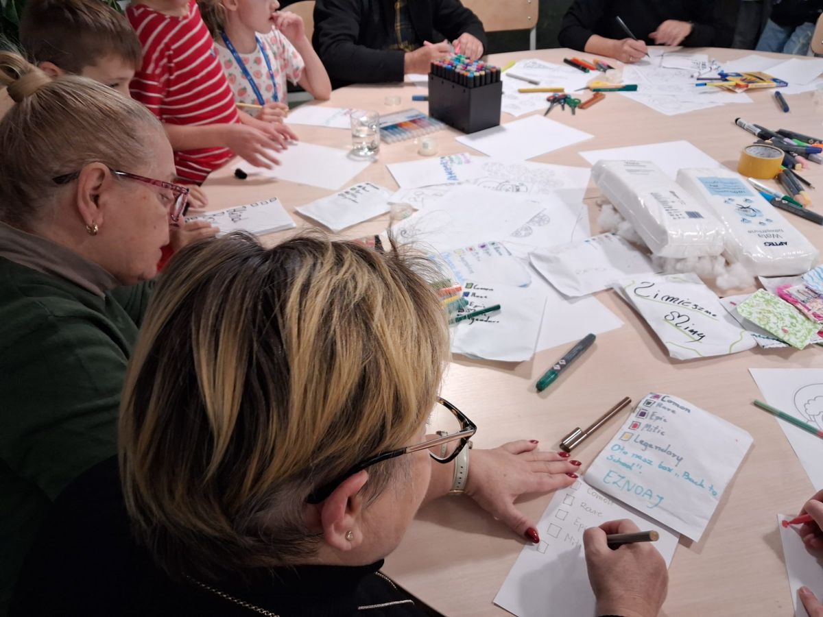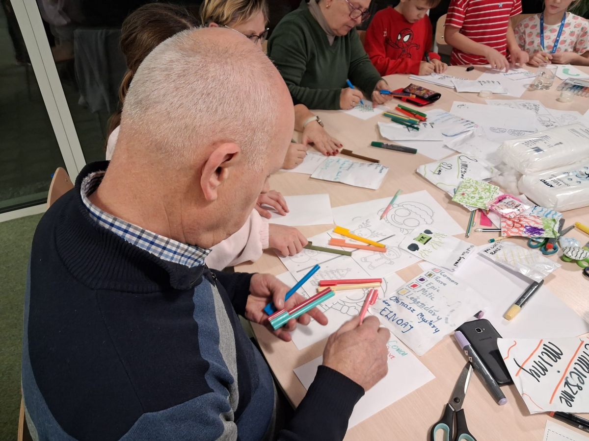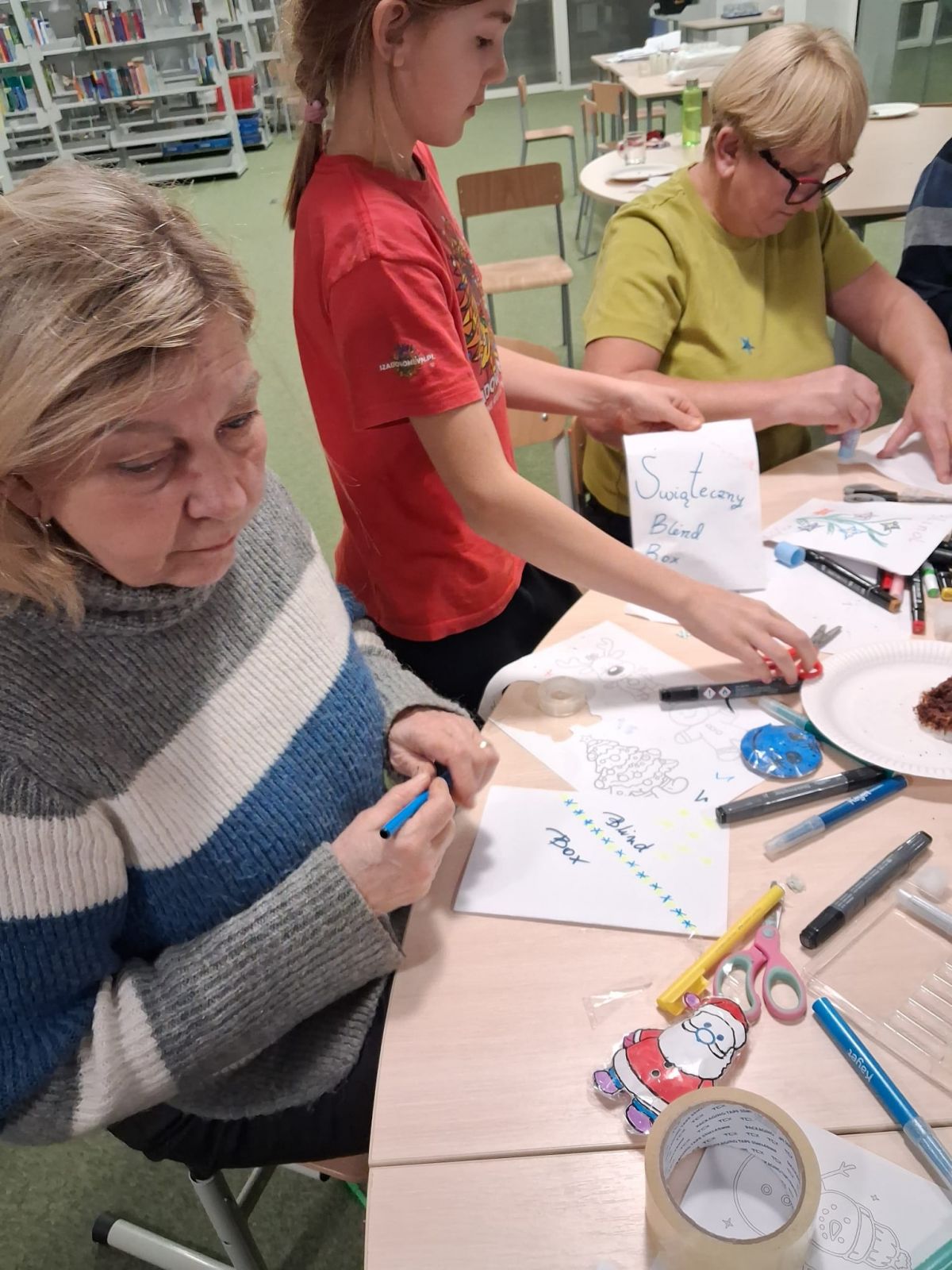 Uczniowie i seniorzy wspólnie tworzyli świąteczne Blind Boxy ze Squishy, czyli paczuszki-niespodzianki. Wspólne dekorowanie i pakowanie było okazją do rozmów, żartów i wymiany doświadczeń.