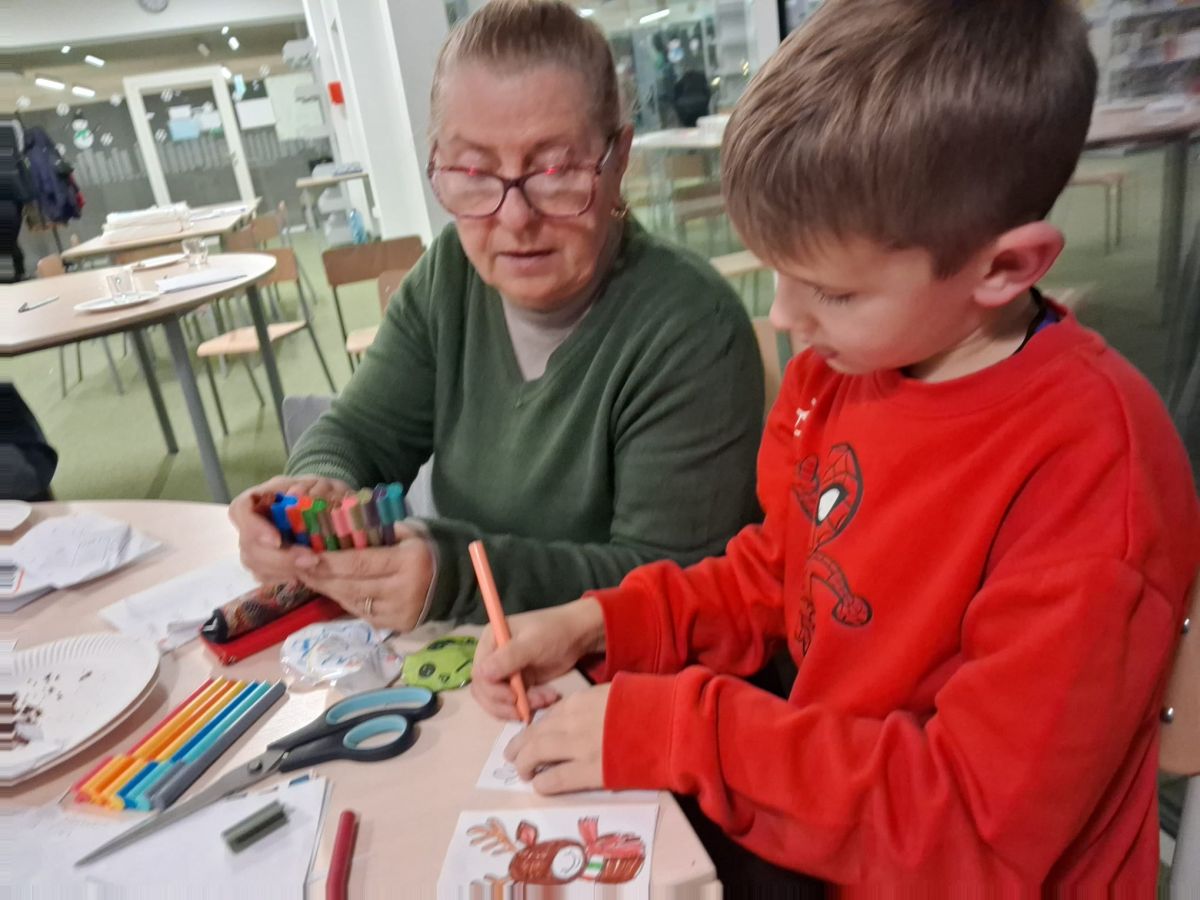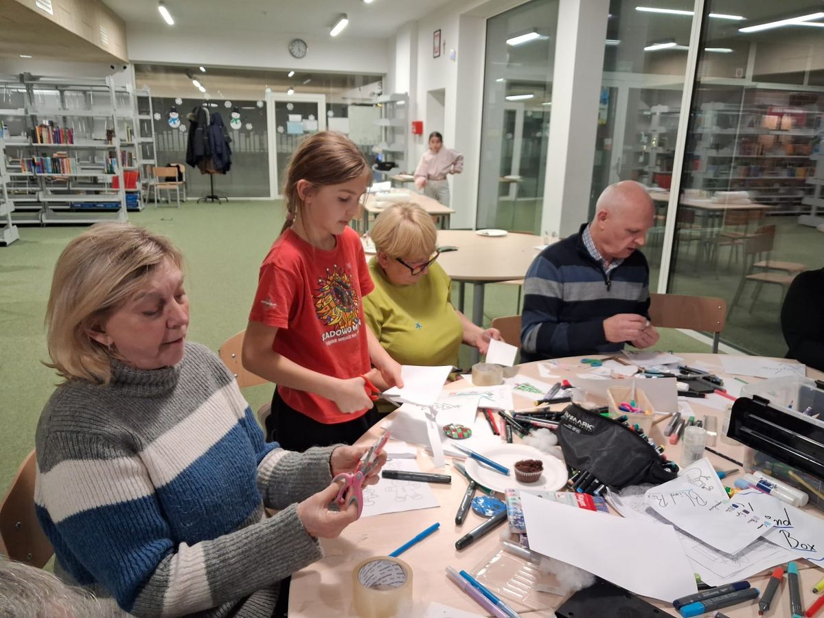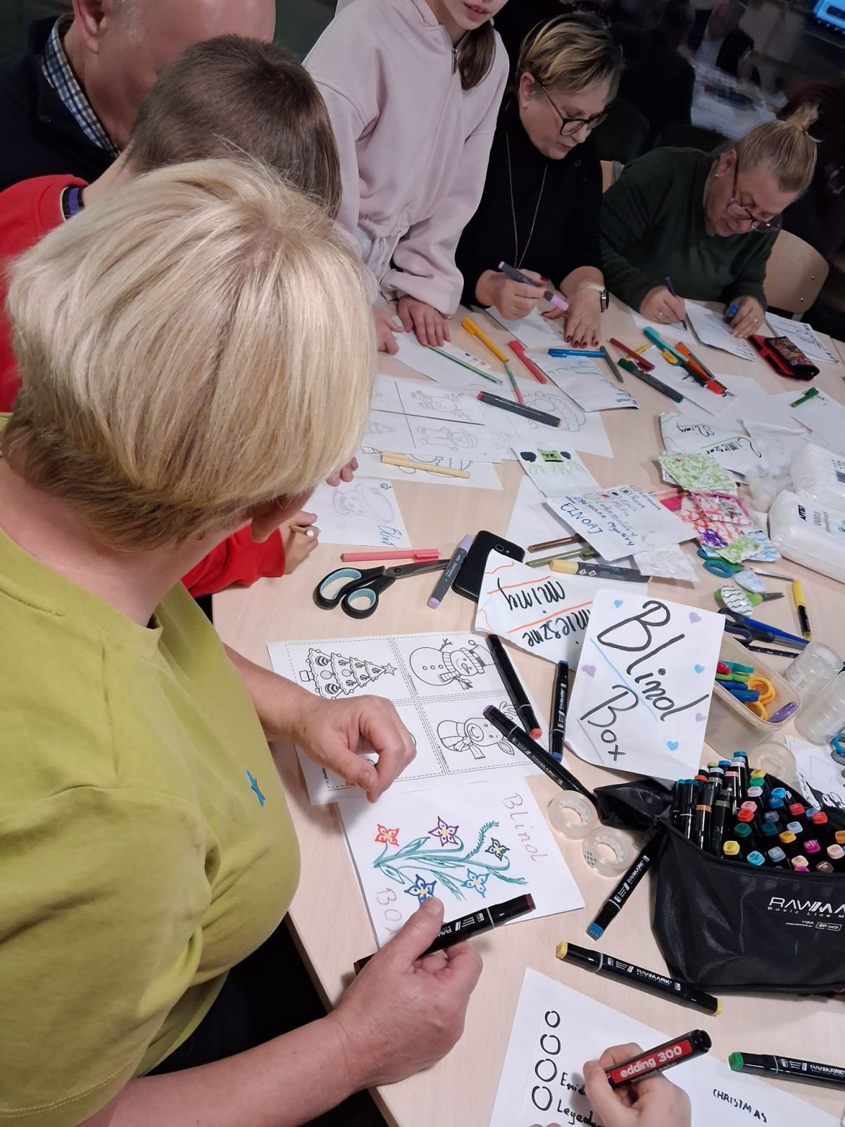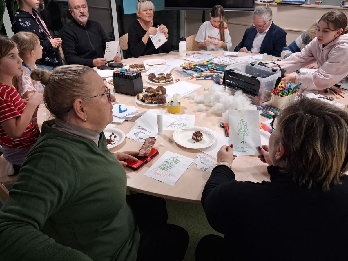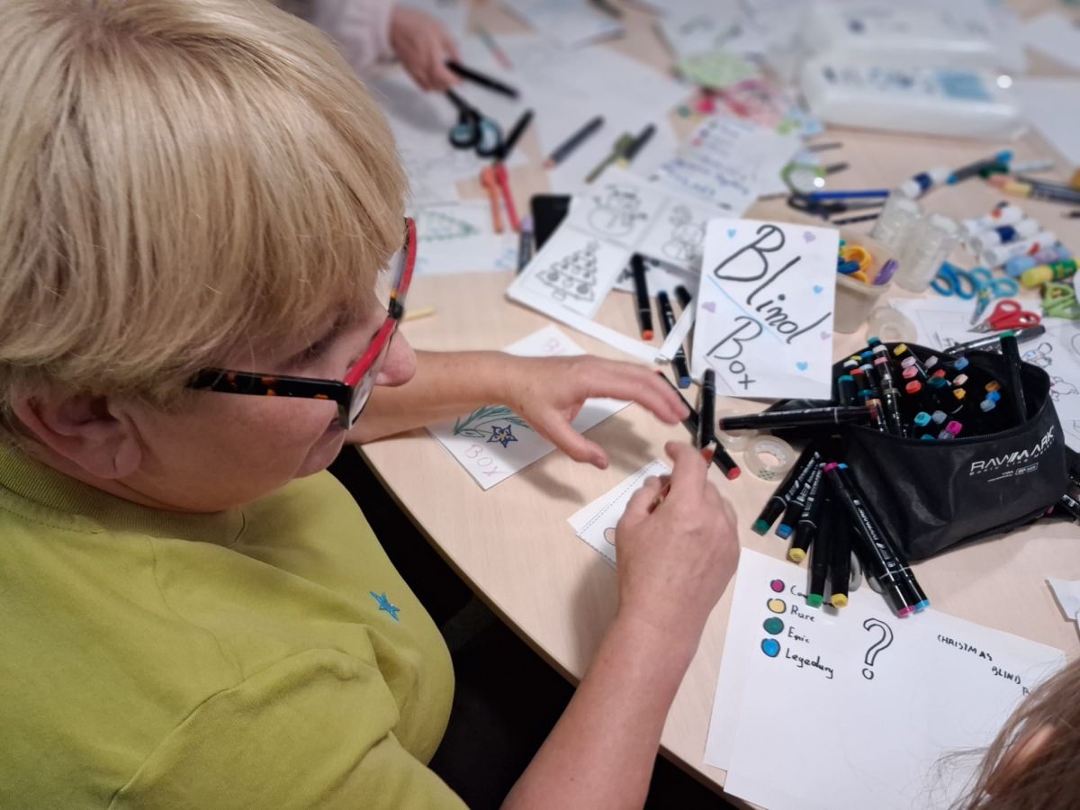 Uczniowie i seniorzy wspólnie tworzyli świąteczne Blind Boxy ze Squishy, czyli paczuszki-niespodzianki. Wspólne dekorowanie i pakowanie było okazją do rozmów, żartów i wymiany doświadczeń.