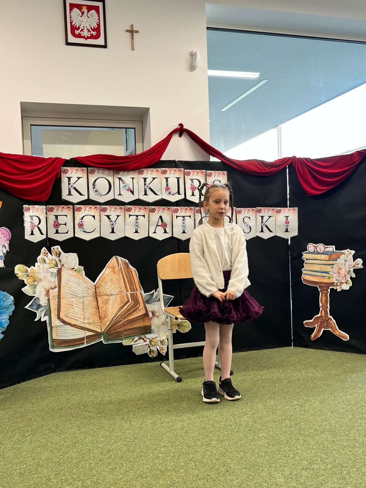 3 kwietnia odbył się szkolny etap gminnego konkursu recytatorskiego organizowanego przez Szkołę Podstawową w Żernikach Wrocławskich zatytułowany „80 lat naszej szkoły”. W konkursie wzięło udział ponad 40 uczestniczek i uczestników. Zaprezentowano nam całe spektrum wierszy o szkole, nauczycielkach, przerwach i pleckach. Z wiadomych względów królował wśród nich Jan Brzechwa z wierszem „Atrament i kreda” .