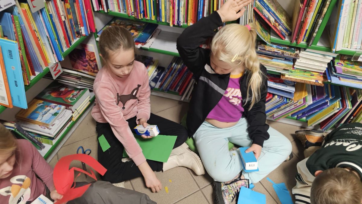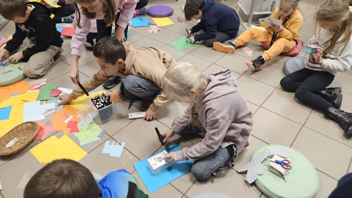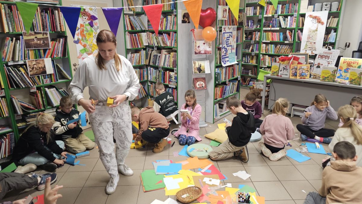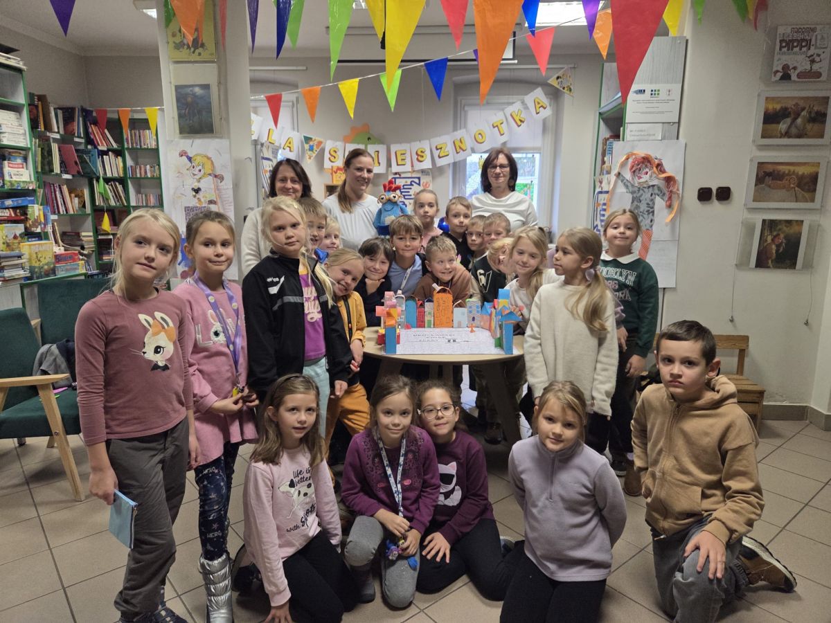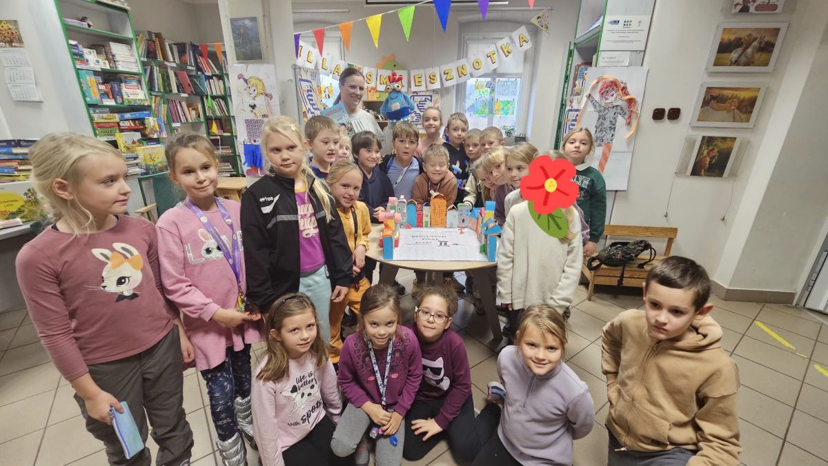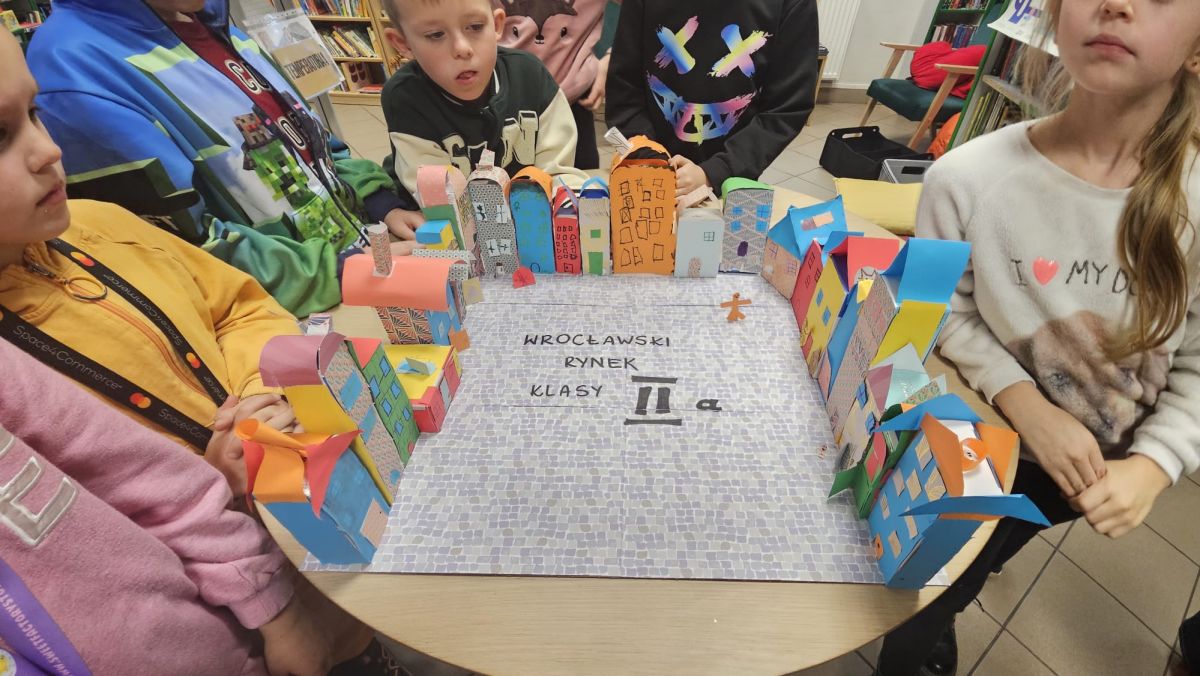 W dniu 25 listopada 2025 roku w Bibliotece Gminnej klasa 2a uczestniczyła w spotkaniu z panią Katarzyną Osuch, autorką przewodnika „Wrocław na barana”. Najpierw w ramach „Cudze chwalicie, swego nie znacie” uczniowie odpowiadali na zagadki dotyczące Wrocławia. Dzieci wykonały flagę Wrocławia. Następnie omówiliśmy kamienice będące ozdobą wrocławskiego rynku i sami zaprojektowaliśmy wspaniały rynek, wykorzystując do tego pudełka, kolorowe papiery. Niektórzy zrobili nawet krasnale