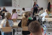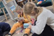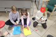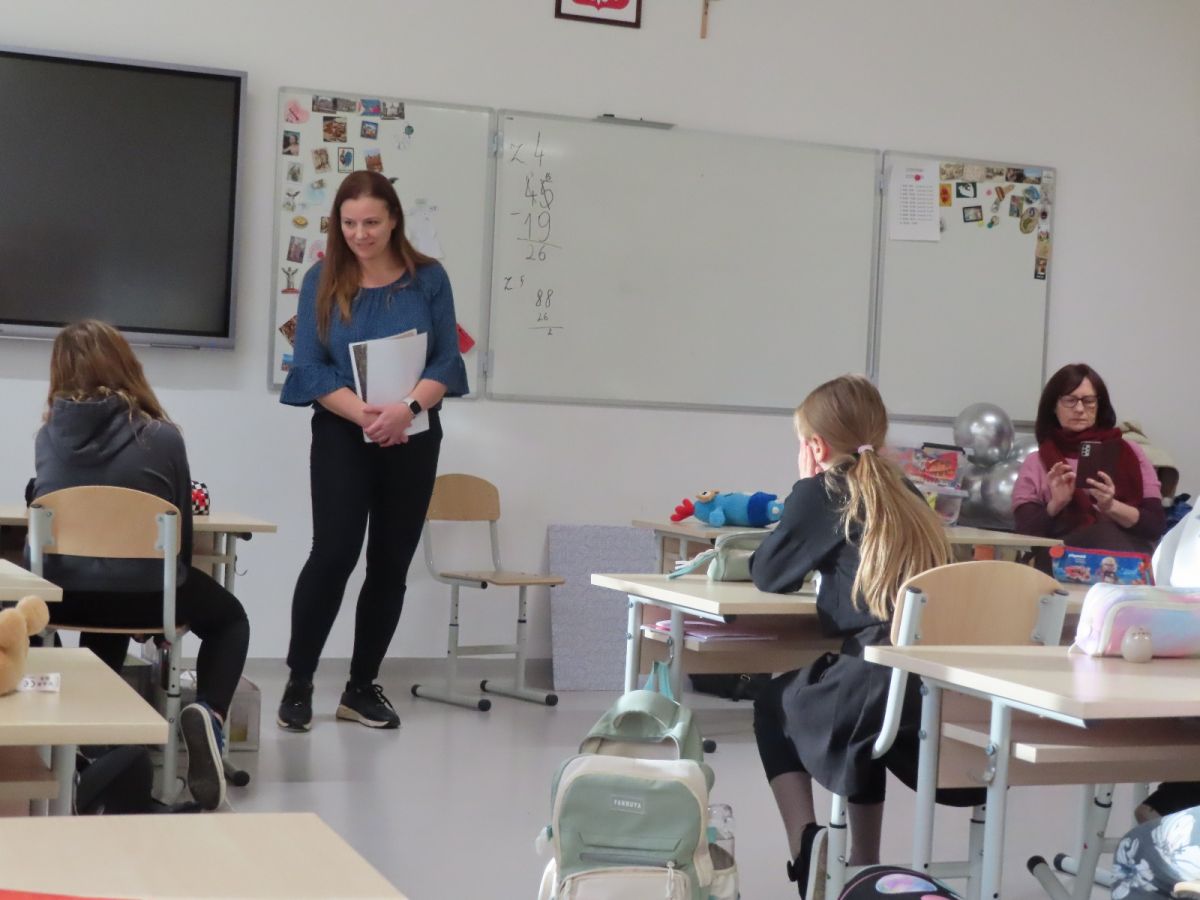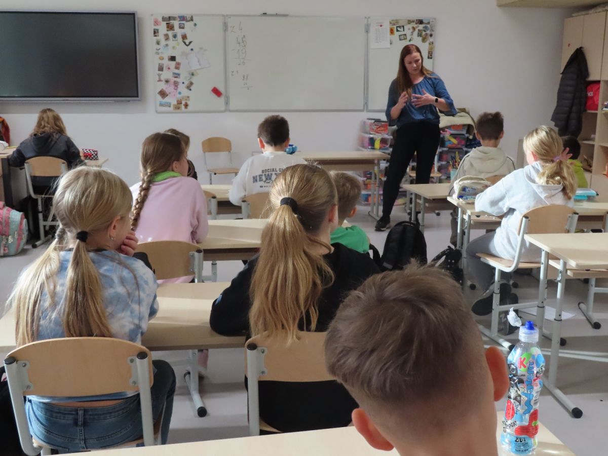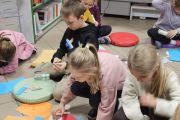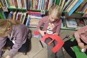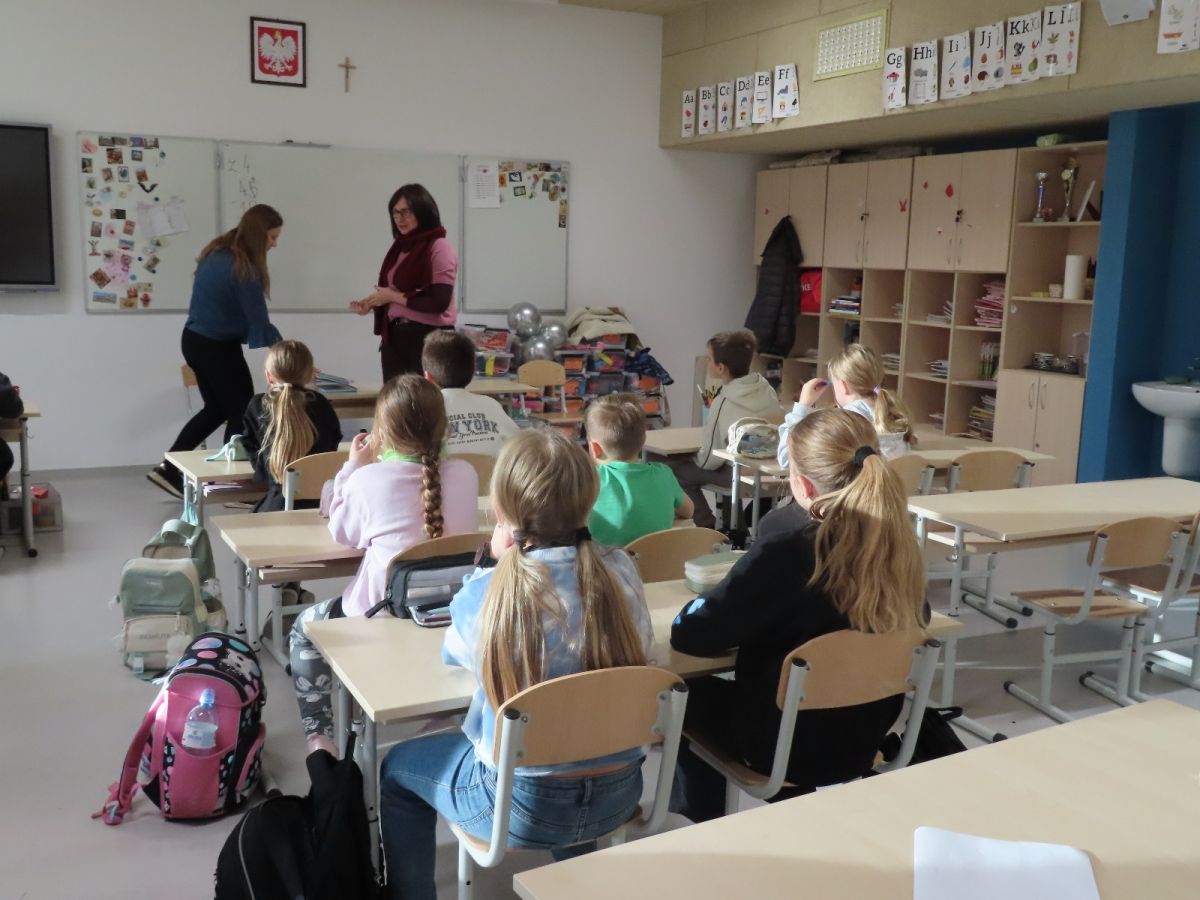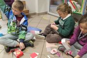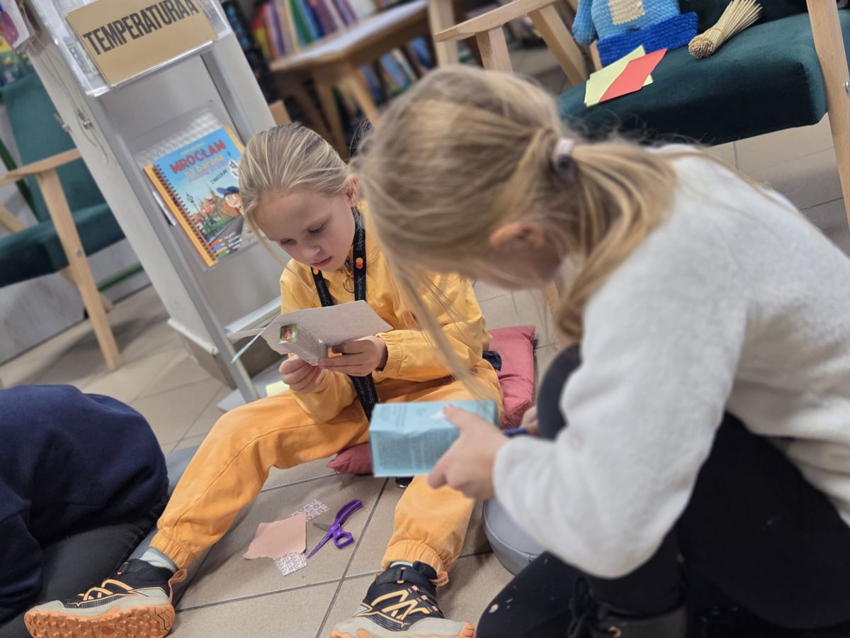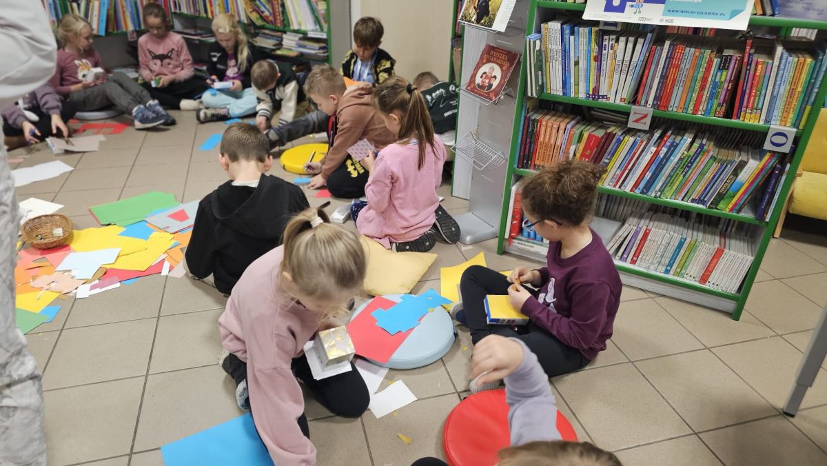 W dniu 25 listopada 2025 roku w Bibliotece Gminnej klasa 2a uczestniczyła w spotkaniu z panią Katarzyną Osuch, autorką przewodnika „Wrocław na barana”. Najpierw w ramach „Cudze chwalicie, swego nie znacie” uczniowie odpowiadali na zagadki dotyczące Wrocławia. Dzieci wykonały flagę Wrocławia. Następnie omówiliśmy kamienice będące ozdobą wrocławskiego rynku i sami zaprojektowaliśmy wspaniały rynek, wykorzystując do tego pudełka, kolorowe papiery. Niektórzy zrobili nawet krasnale