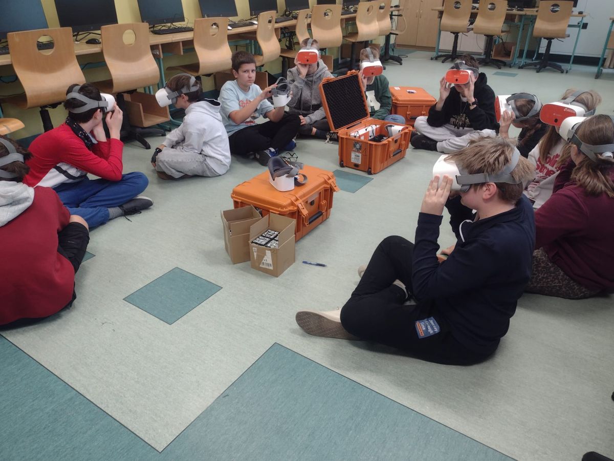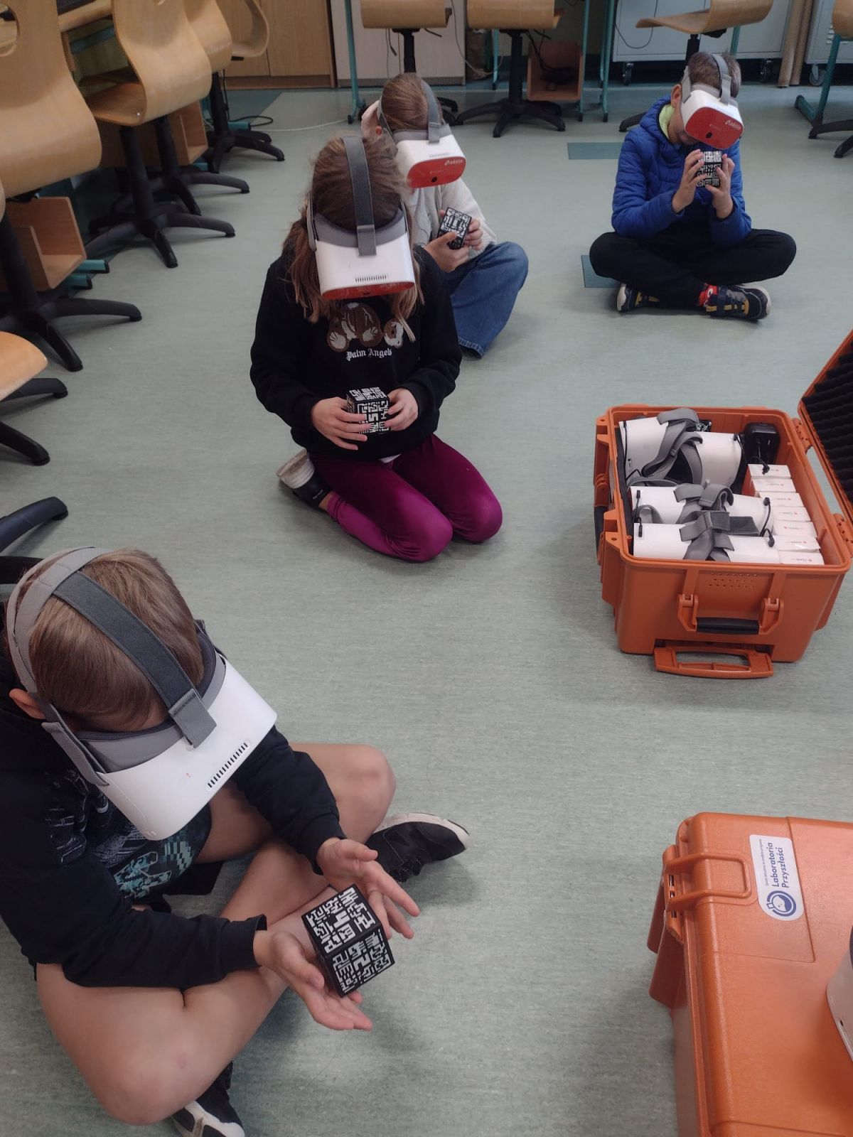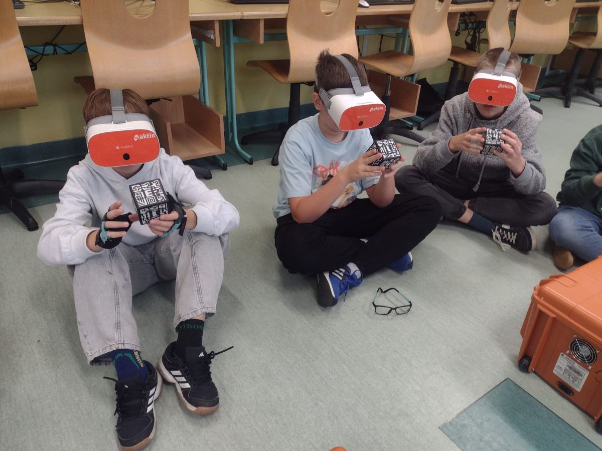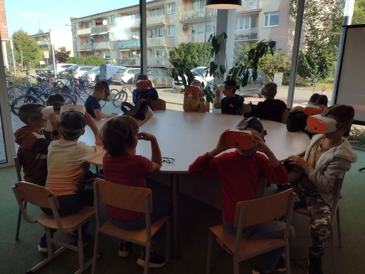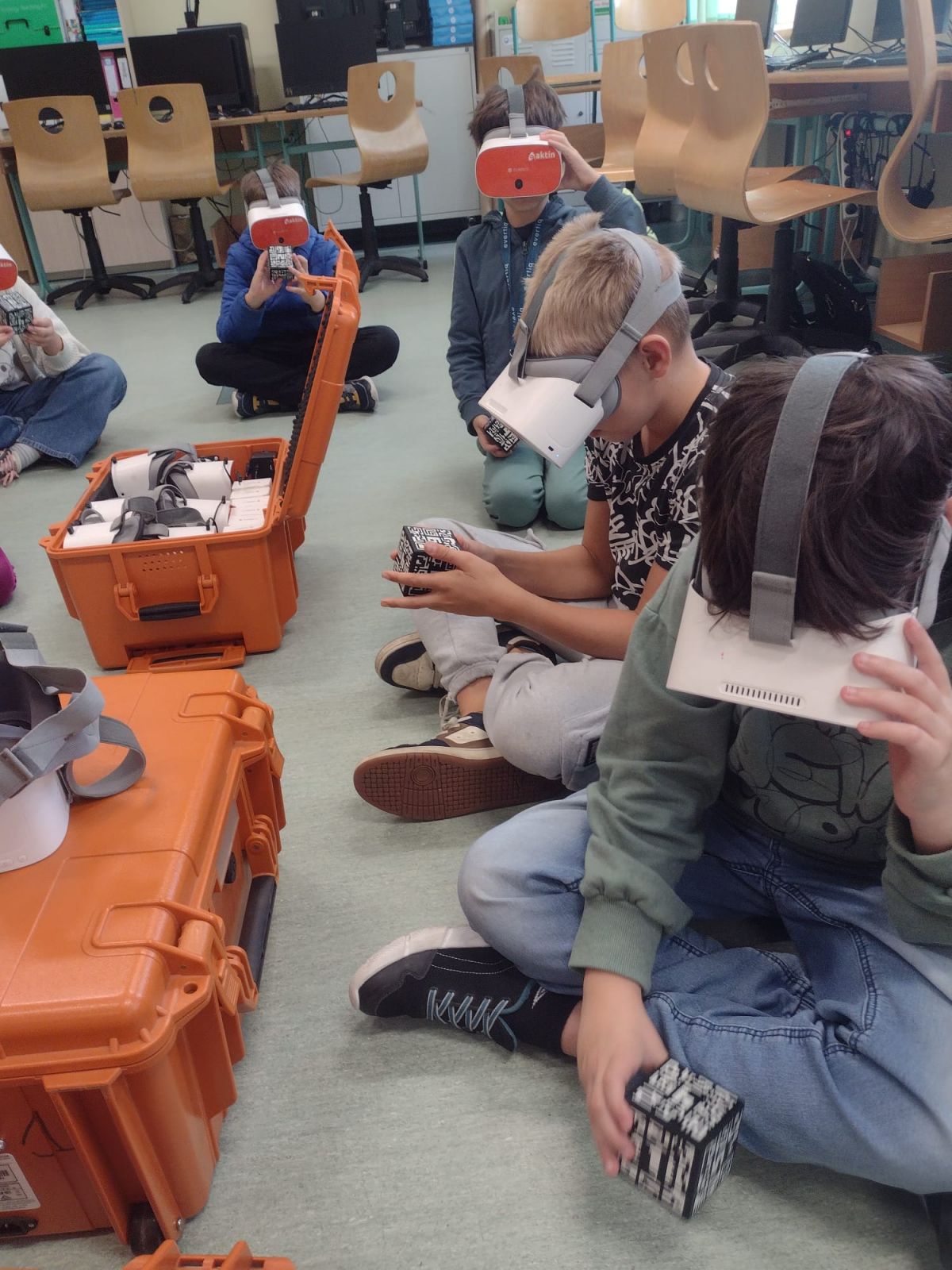 Uczniowie klas 3f, 3g, 3c, 2c oraz uczestnicy kół robotycznych z klas 4–5 i 6–7 wzięli udział w wyjątkowych zajęciach z wykorzystaniem okularów VR. Dzięki tej nowoczesnej technologii mogli przenieść się w zupełnie inny wymiar nauki – dosłownie!