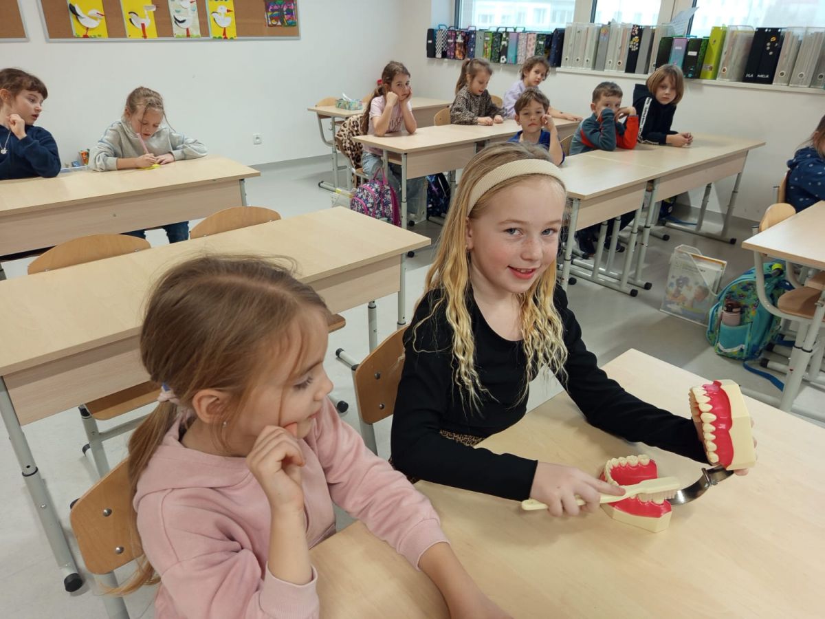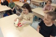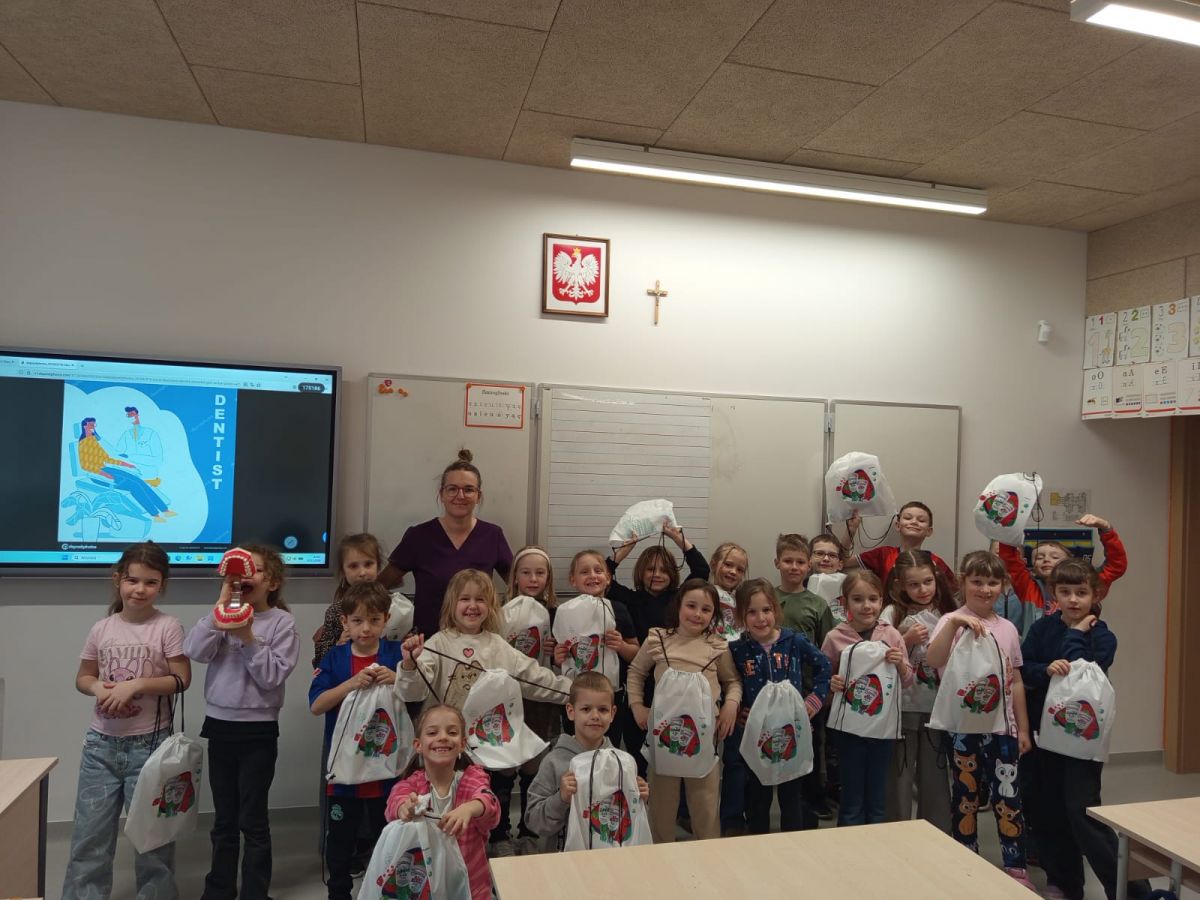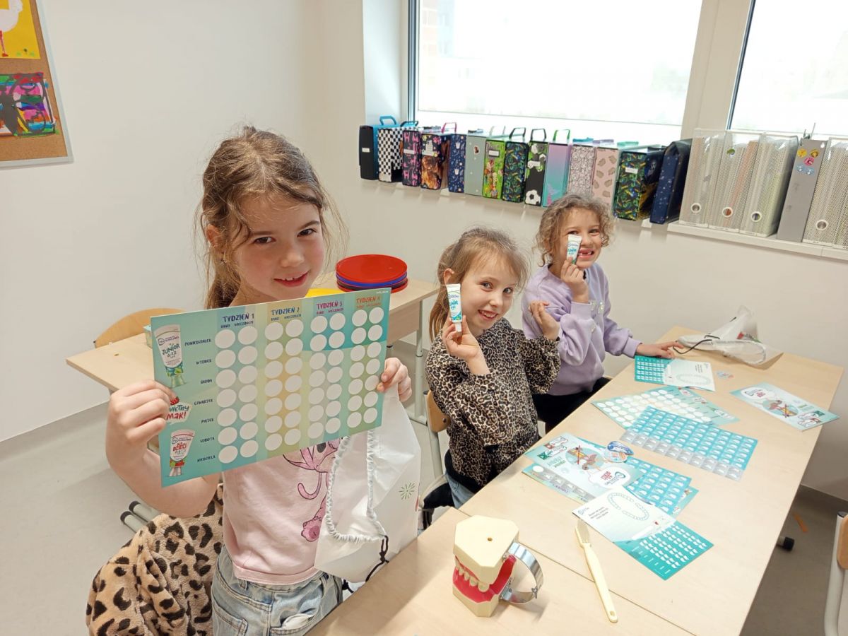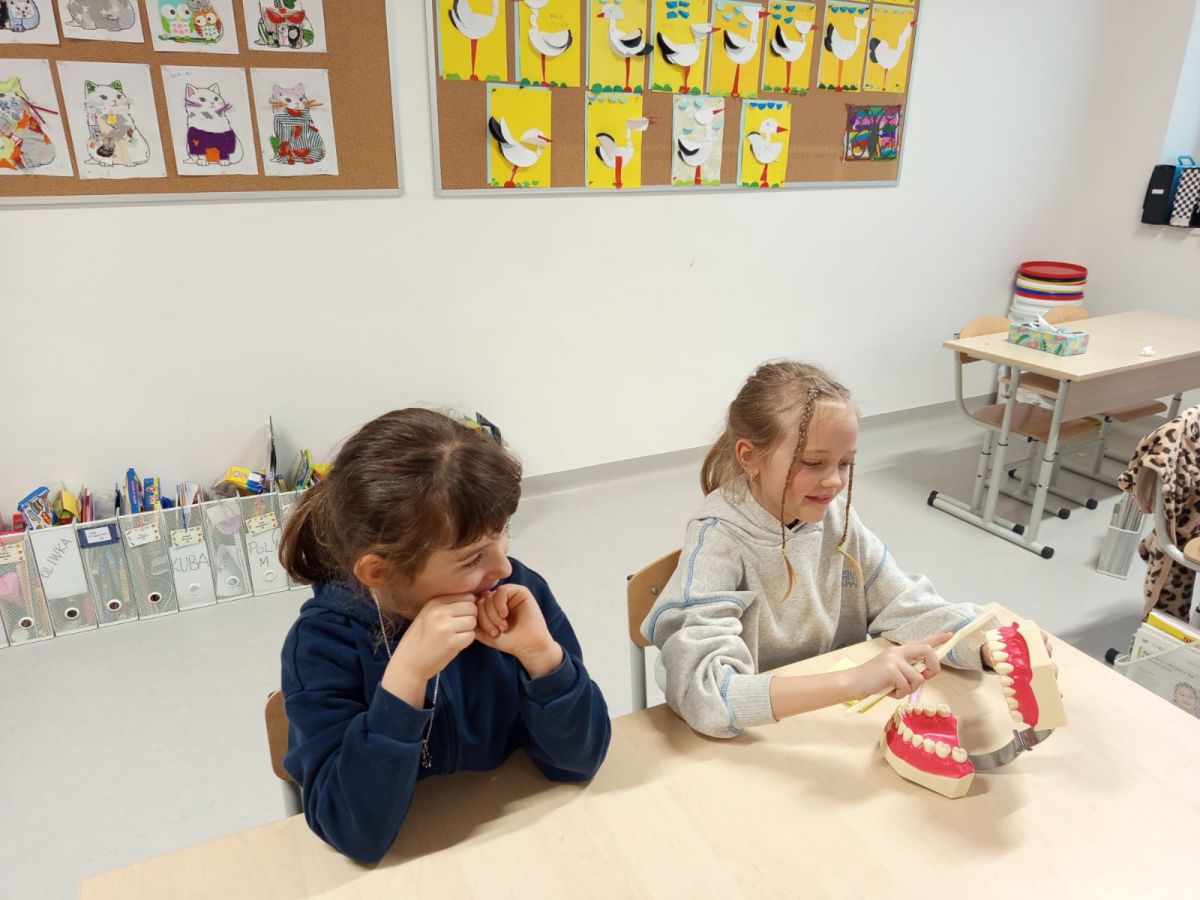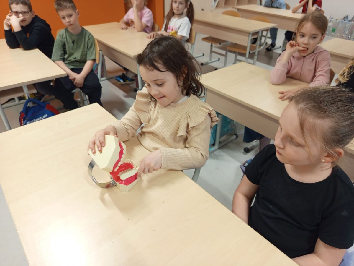 Pani Justyna opowiedziała dzieciom o tym, jak prawidłowo dbać o zęby i higienę jamy ustnej. Uczniowie poznali też budowę zęba i utrwalili swoją wiedzę na temat tego, jak radzić sobie z próchnicą.