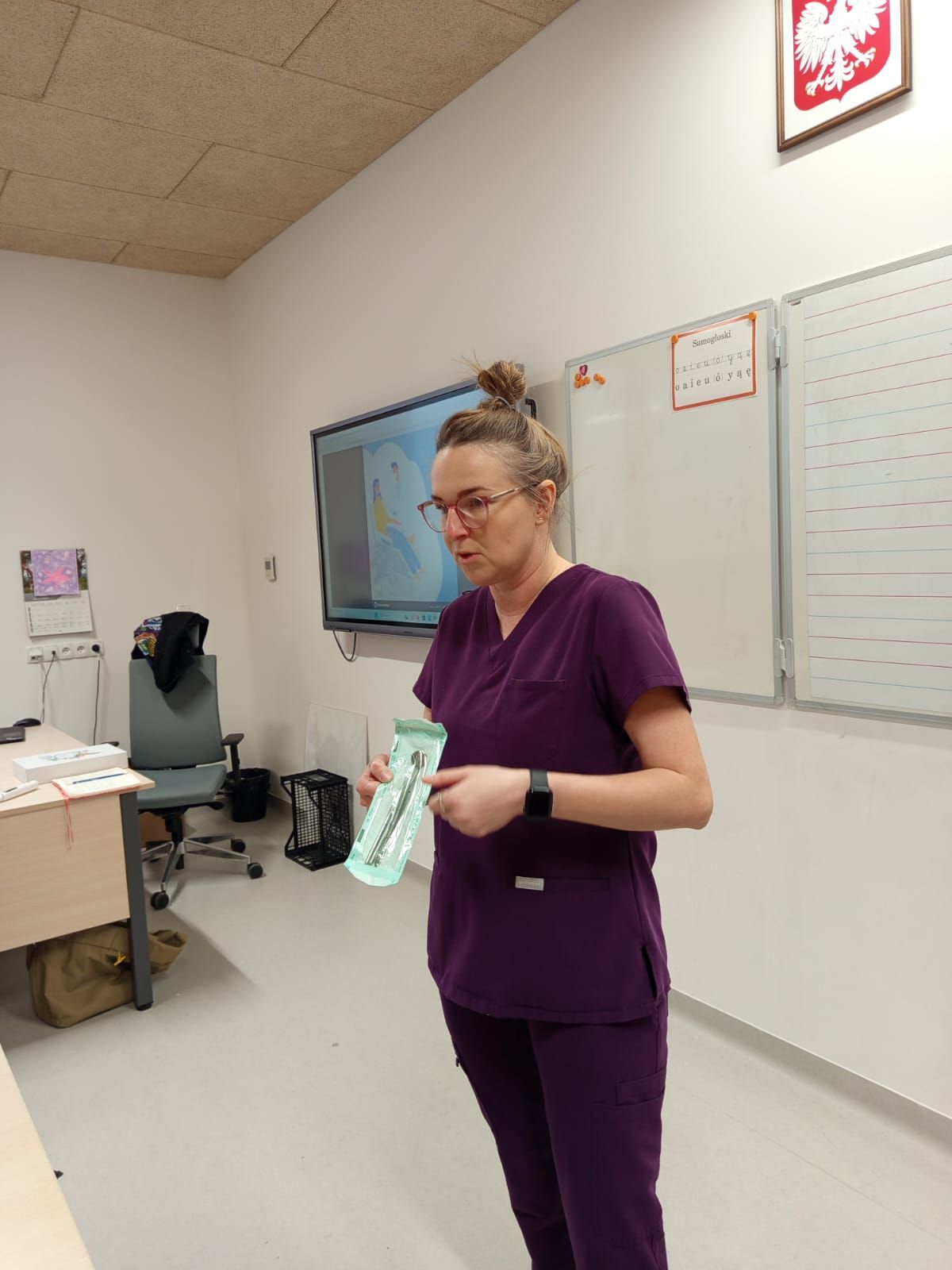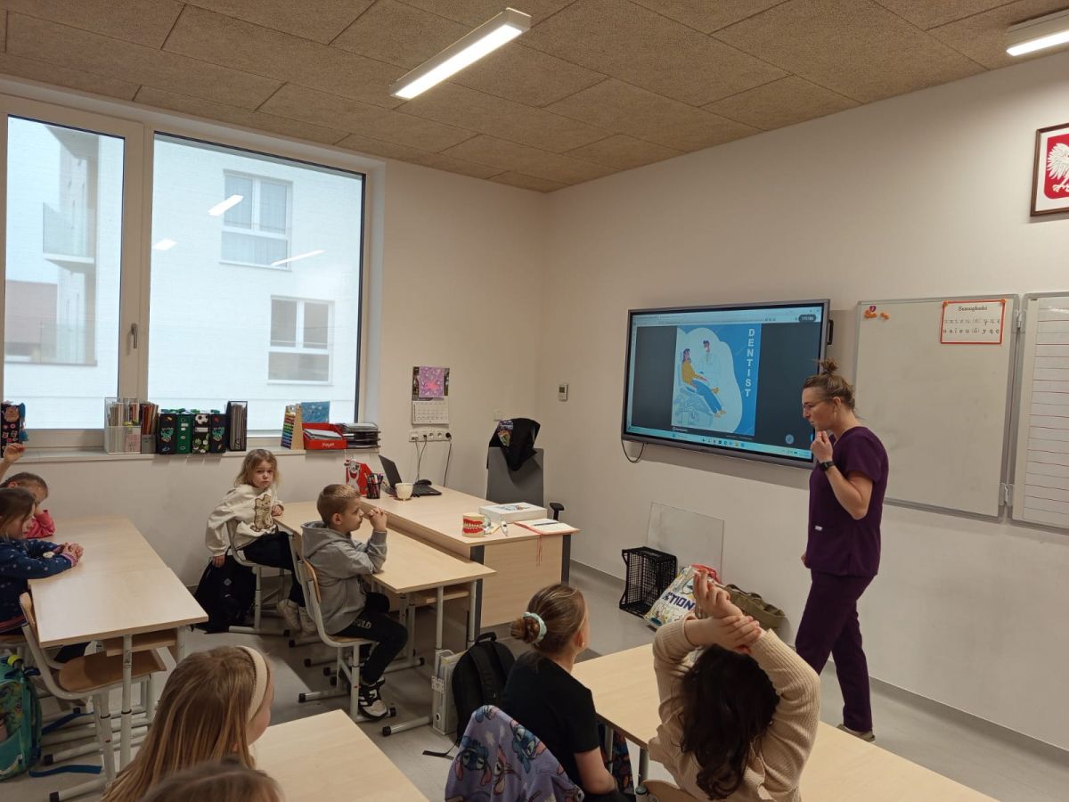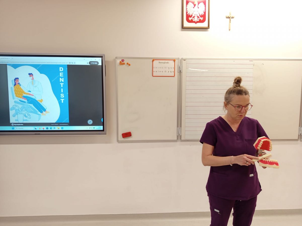 Klasę 1b odwiedziła dzisiaj mama Jasia, pani Justyna Dolata, która jest higienistką stomatologiczną.
