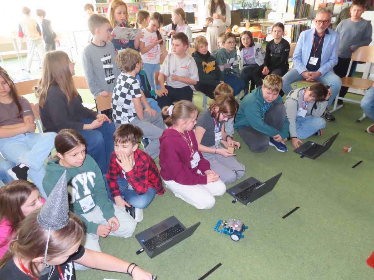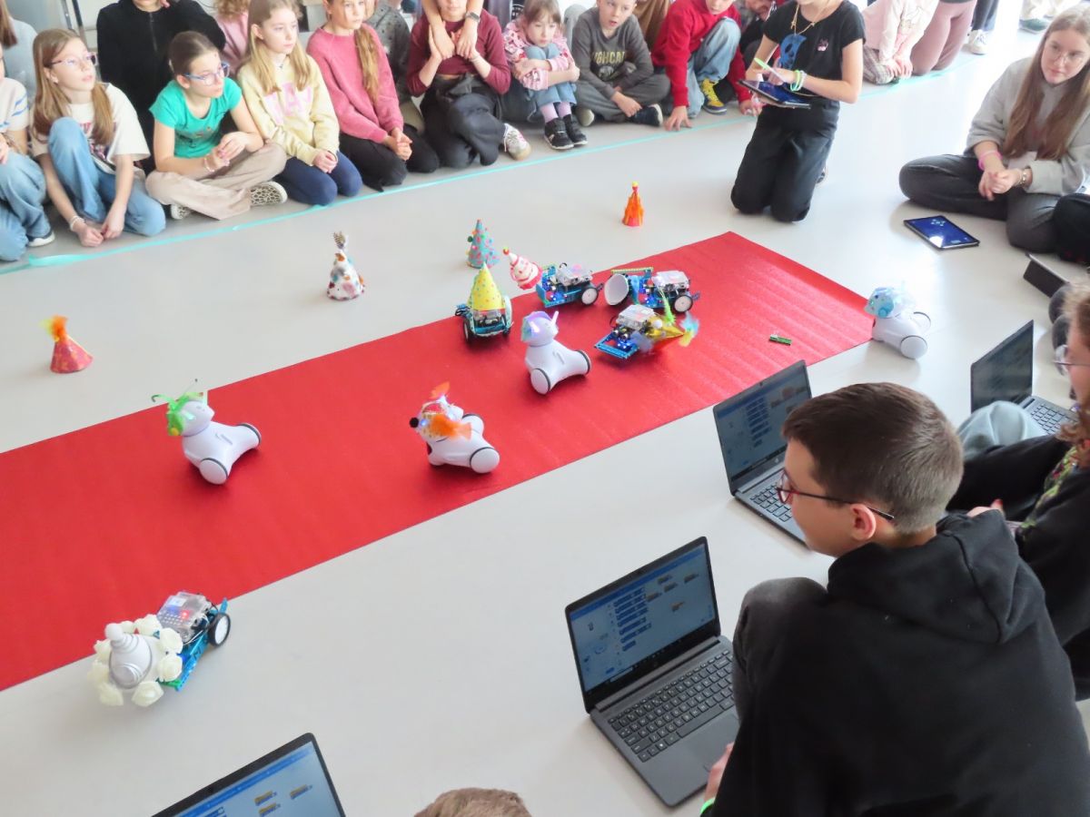 Zorganizowaliśmy i przeprowadziliśmy Zawody Robotyczne w klasach 4-5. W całych zawodach wzięło udział 90 uczniów w 30 drużynach.
