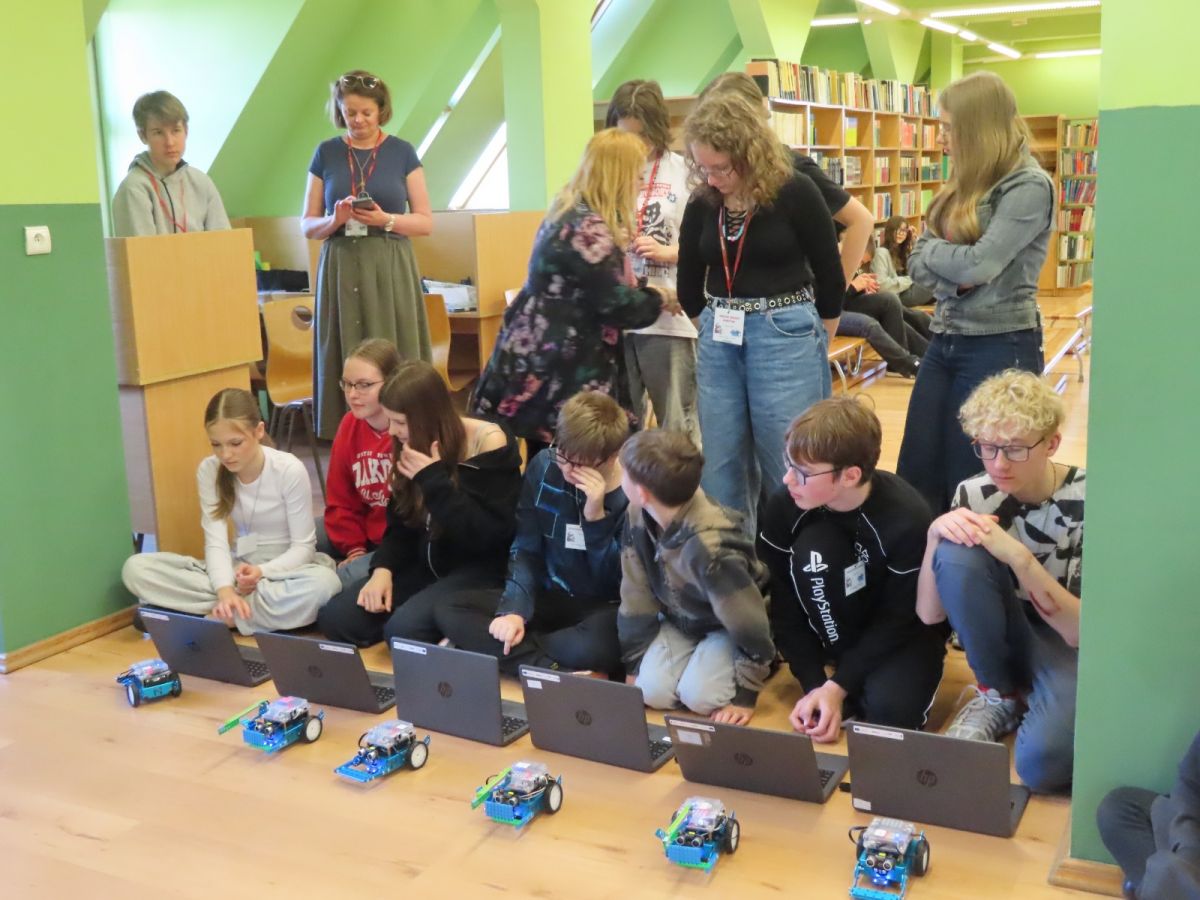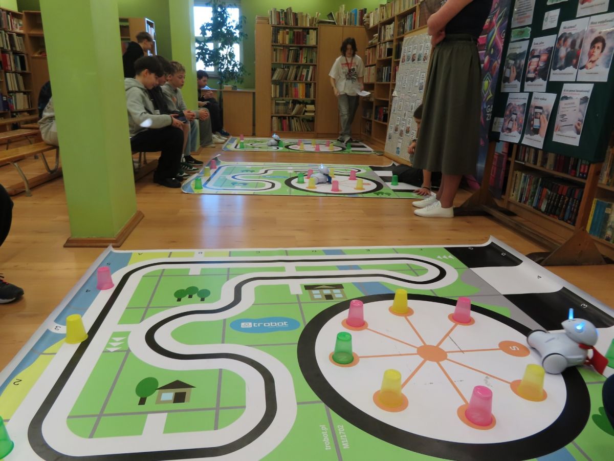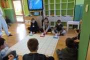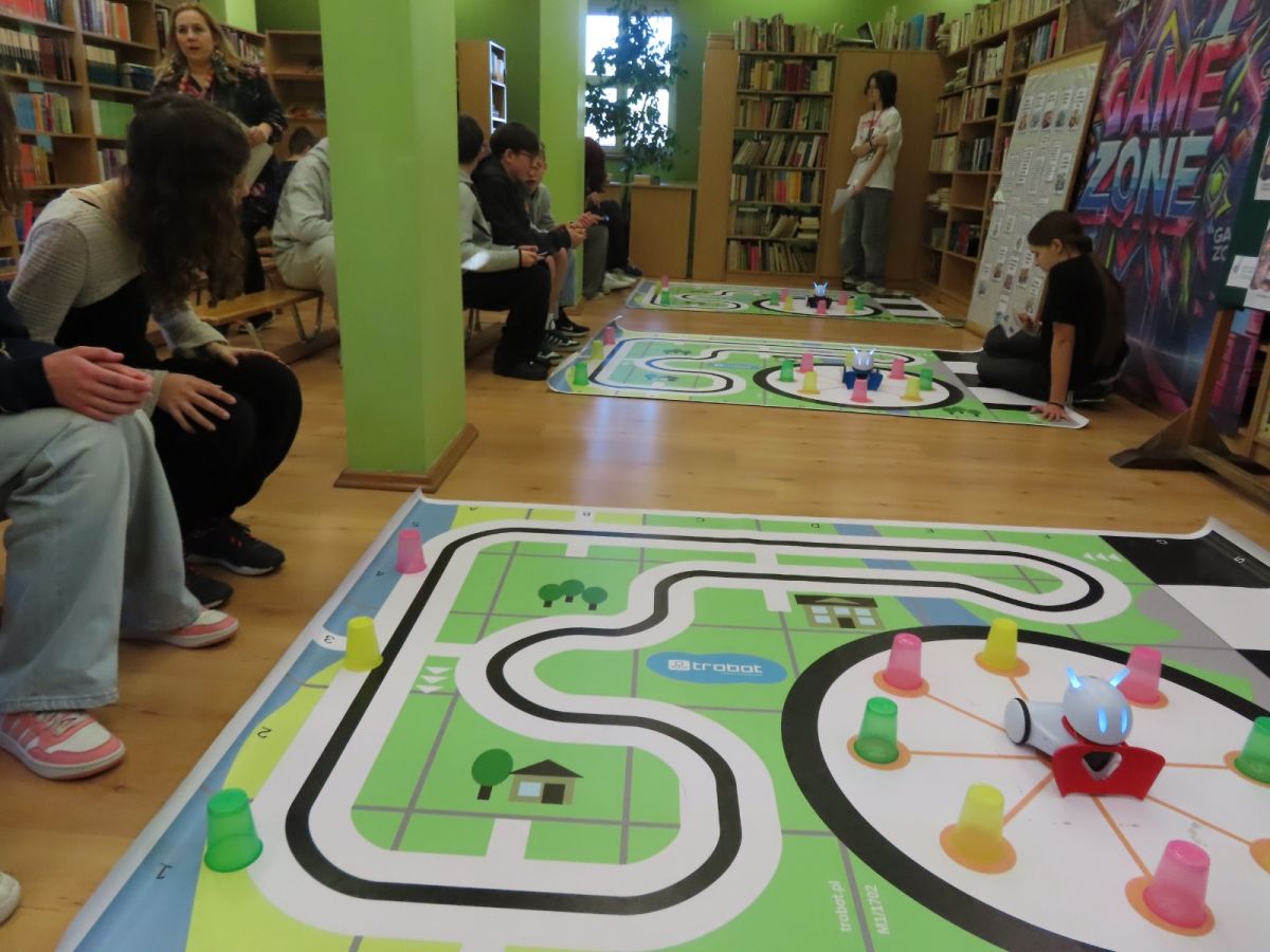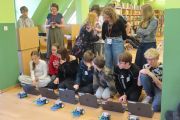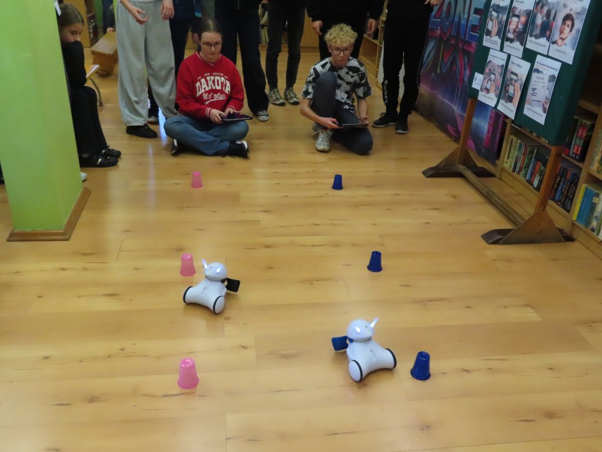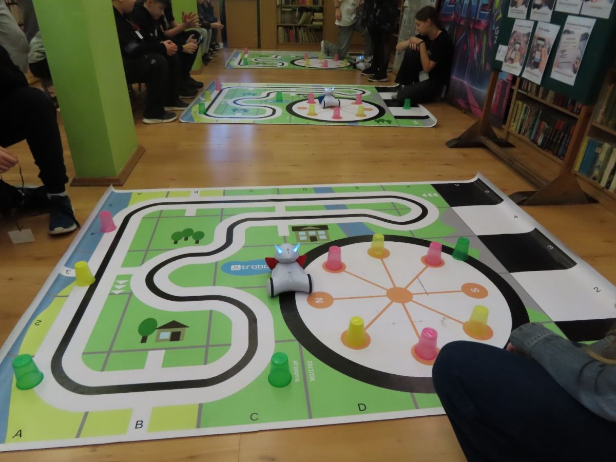 Ogromne emocje wzbudził dwustopniowy wyścig robotów M- Bot zaprogramowanych w programie mBlock. W pierwszym etapie robot musiał przebić balon, a w drugim, pokonać slalom, aby dostarczyć pudełko z zagadką do wyznaczonego miejsca.