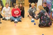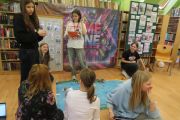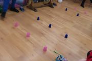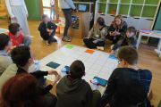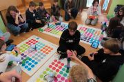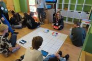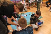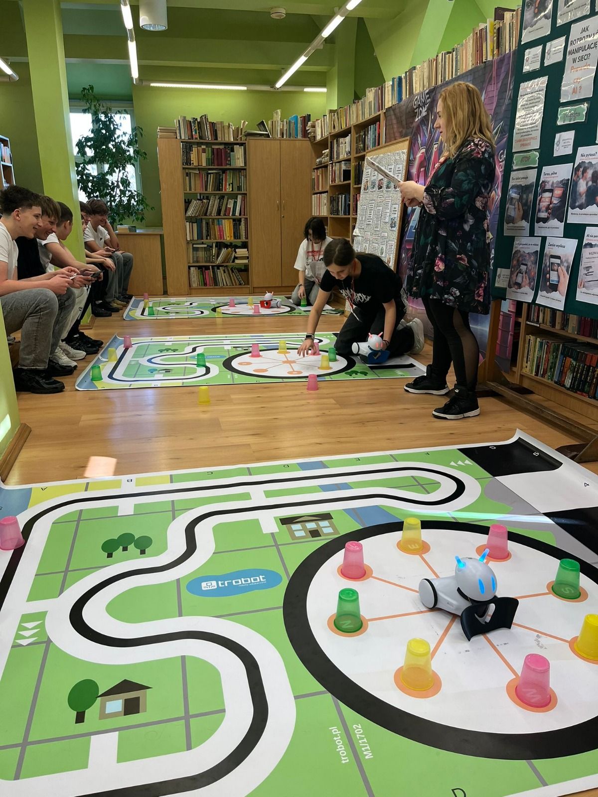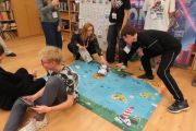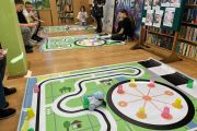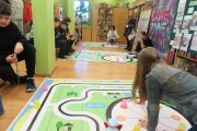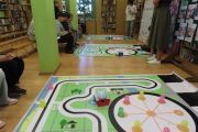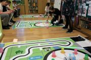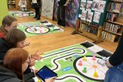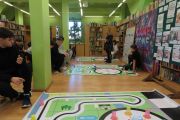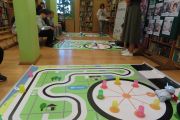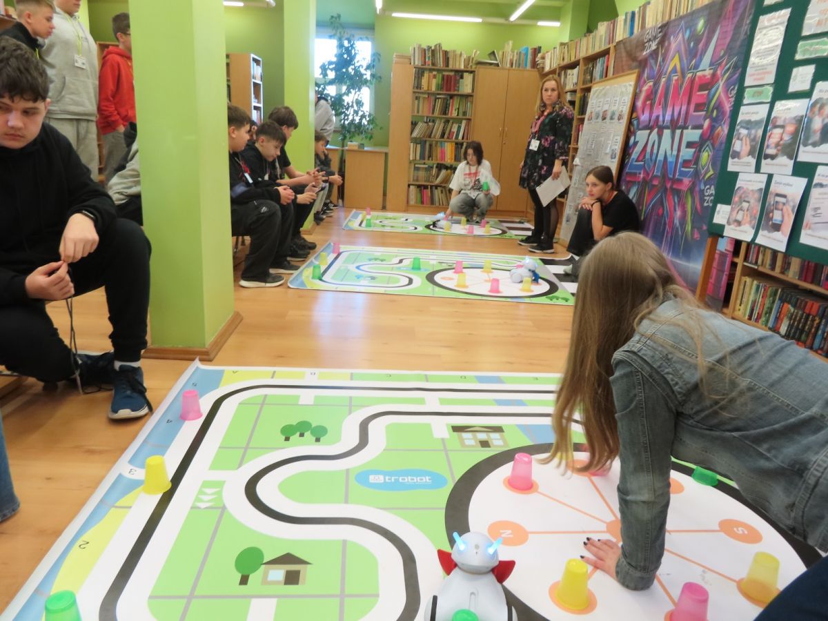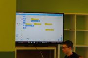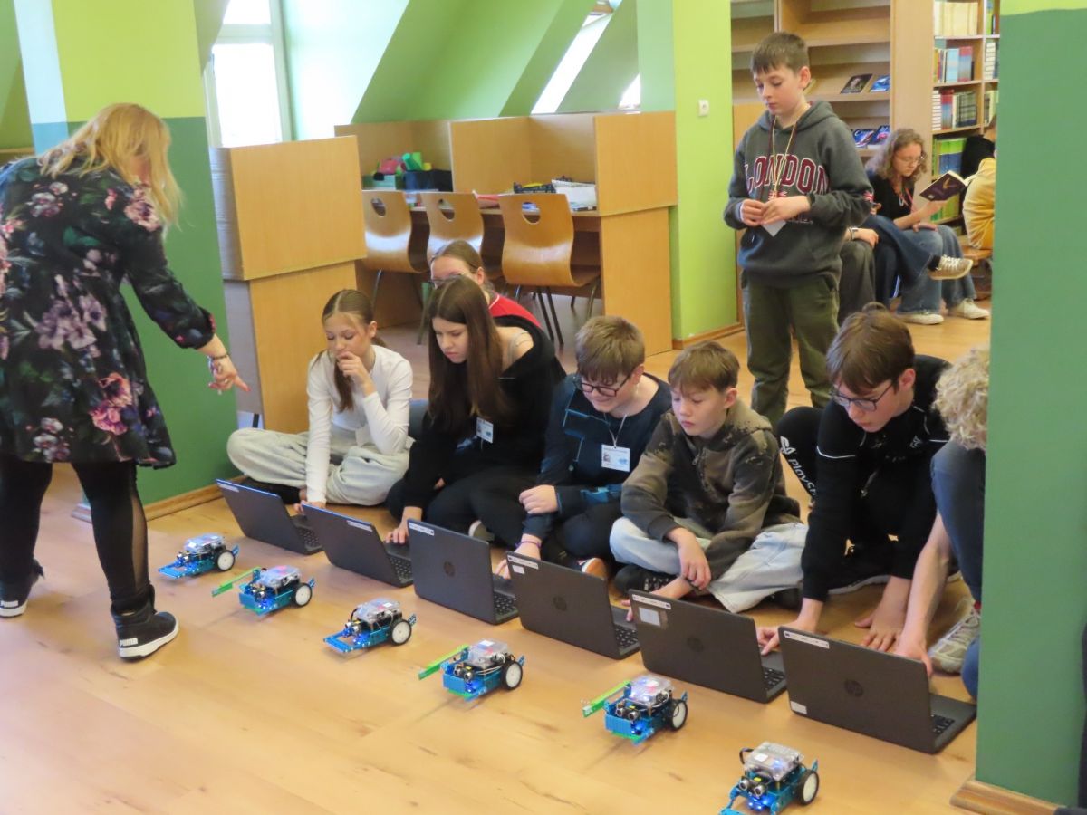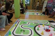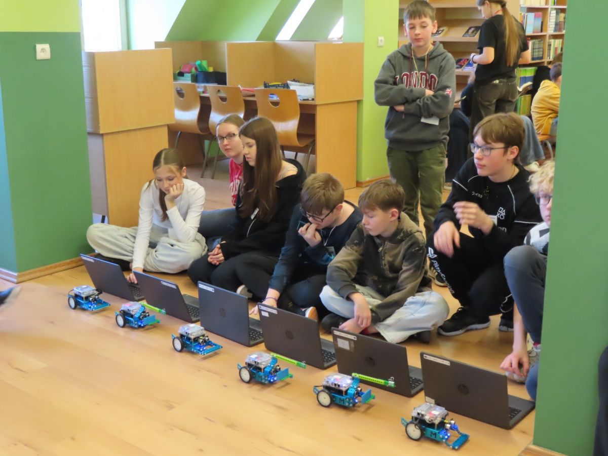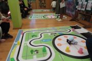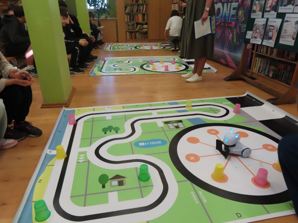 Ogromne emocje wzbudził dwustopniowy wyścig robotów M- Bot zaprogramowanych w programie mBlock. W pierwszym etapie robot musiał przebić balon, a w drugim, pokonać slalom, aby dostarczyć pudełko z zagadką do wyznaczonego miejsca.