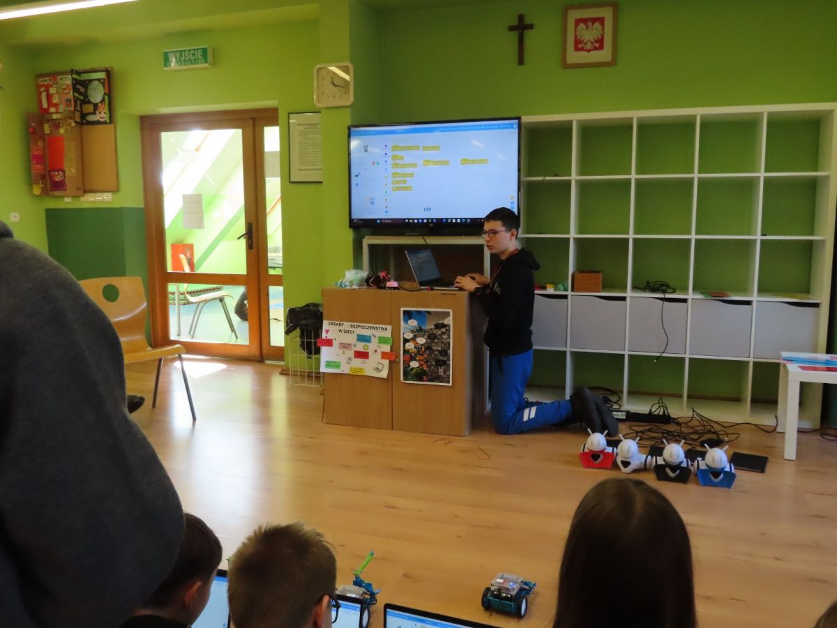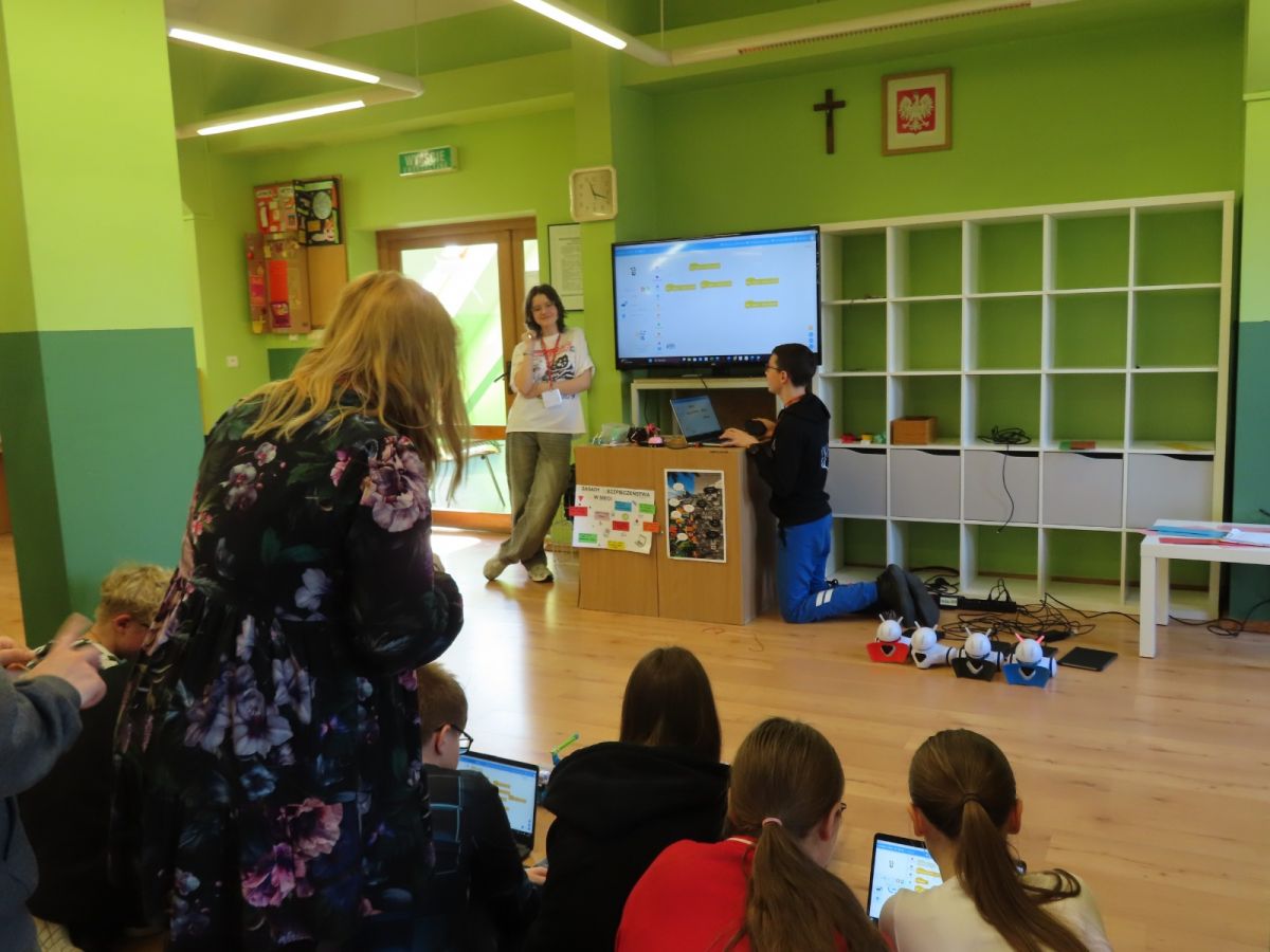 Podczas przerw dużą popularnością cieszyły się okulary VR, dzięki którym dzieci mogły przenieść się do wirtualnego świata. Podczas lekcji informatyki uczniowie oglądali materiały edukacyjne oraz rozmawiali o tym, jak bezpiecznie i odpowiedzialnie korzystać z Internetu.