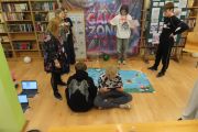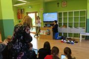 Nie zabrakło również atrakcji dodatkowych. Uczniowie naszej szkoły mogli obejrzeć pokaz robotów w stylu „Top Model”. Photonami i M-botami poruszającymi się po czerwonym dywanie sterowała młodzież z koła programistycznego, a stroje: czapki i maski przygotowały dzieci z klasy 4 i 5.