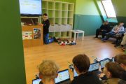 Dużo emocji dostarczył quiz o bezpieczeństwie w sieci, w którym uczniowie odpowiadali na pytania przy użyciu diod robotów Photon.