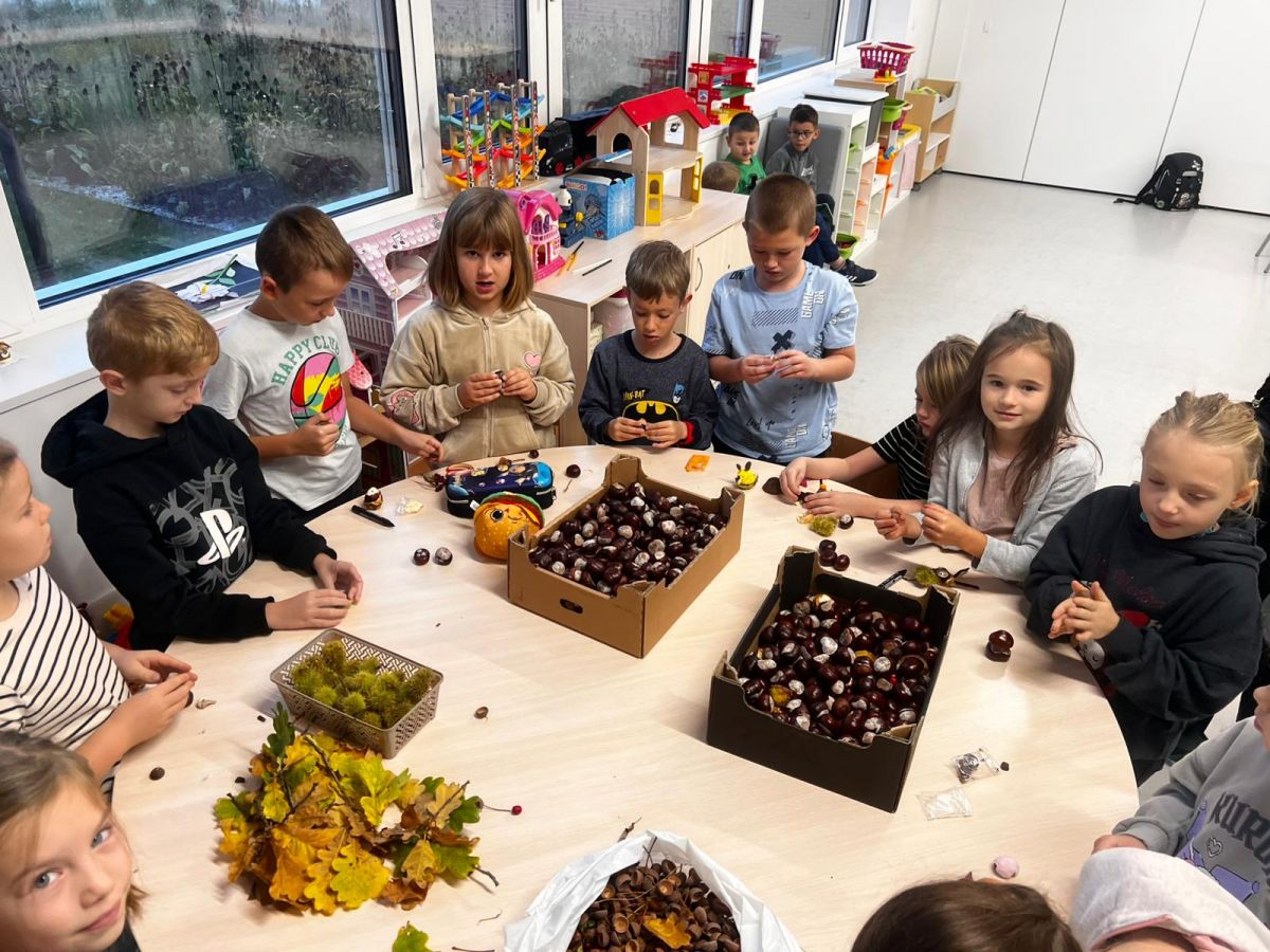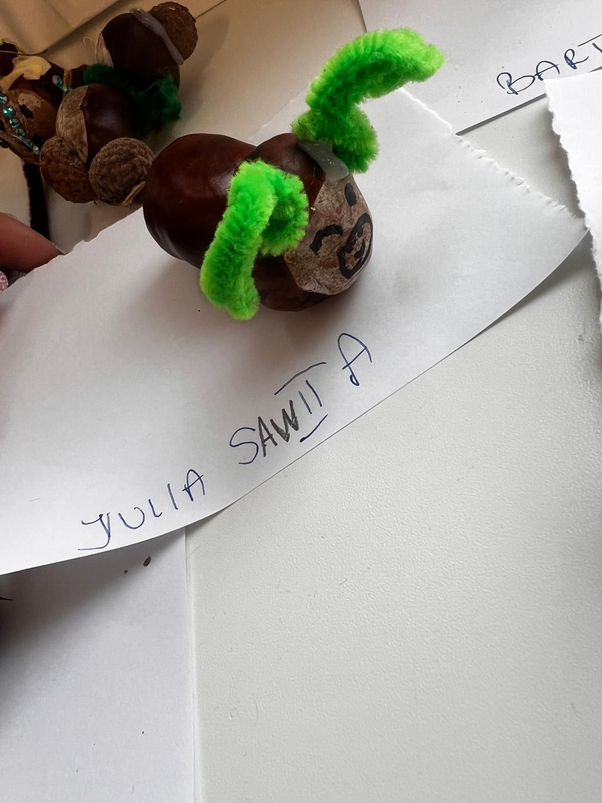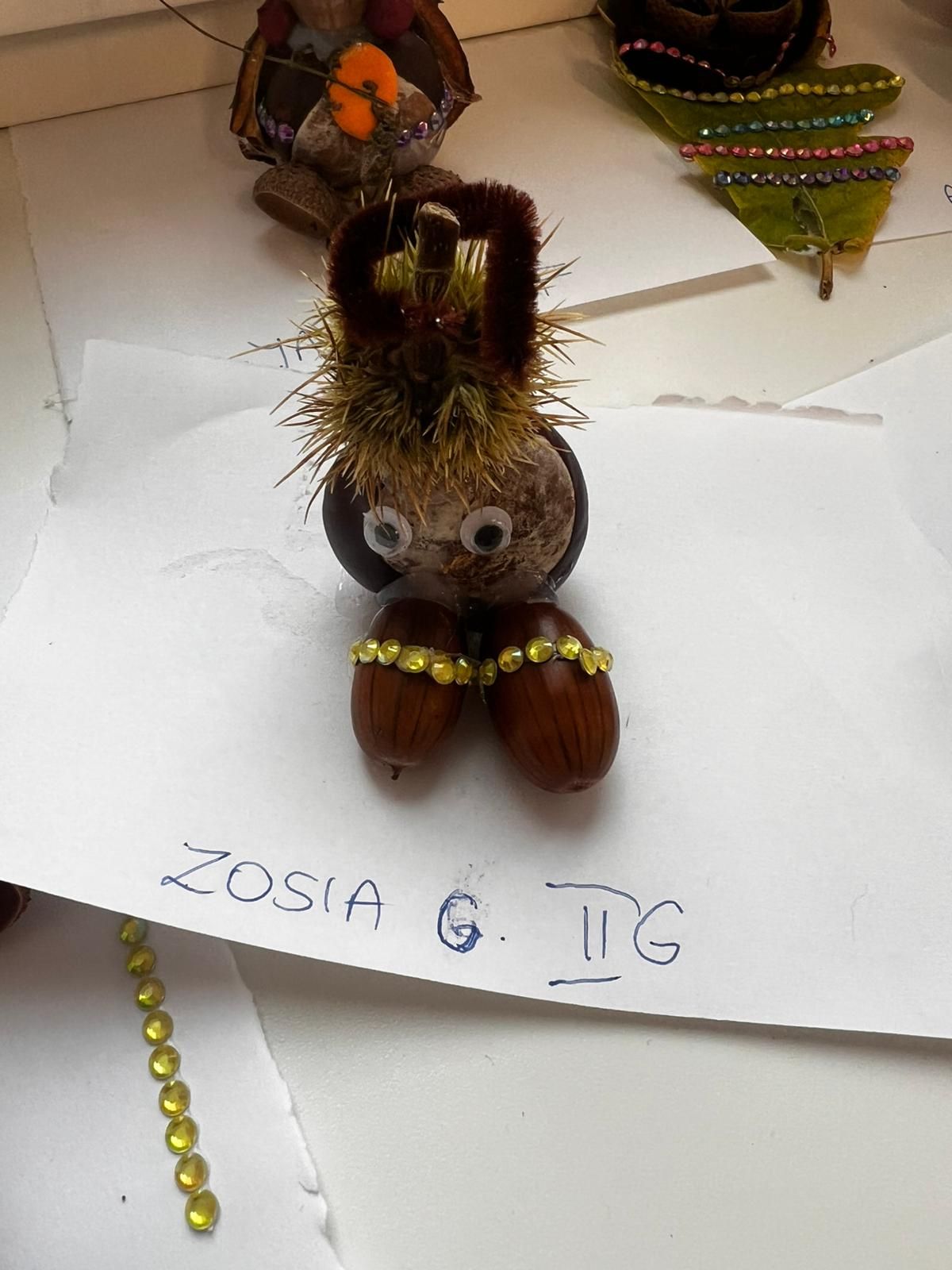 Jesień to idealny czas na twórcze zabawy z darami natury! W naszej szkole uczniowie chętnie wzięli udział w jesiennych warsztatach plastycznych, gdzie tworzyli własne figurki z kasztanów i żołędzi. Przy użyciu plasteliny, kolorowych drucików kreatywnych, oczek, czapeczek z żołędzi i innych dodatków powstały zwierzątka, ludziki, a nawet fantastyczne stwory!
